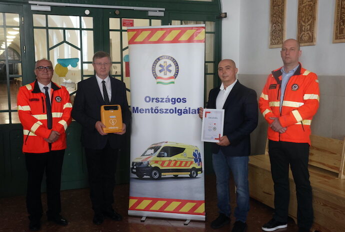 Félautomata defibrillátort kapott iskolánk, amely ünnepélyes átadására szeptember 29-én került sor. Iskolánk a 19. olyan