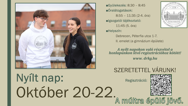 Kedves Nyolcadikosok! Szeretnétek tudni, hogy milyenek az órák egy olyan iskolában, amely több mint 485 éve folyamatosan működik Debrecen belvárosának szívében? Belekóstolnátok a nálunk lévő