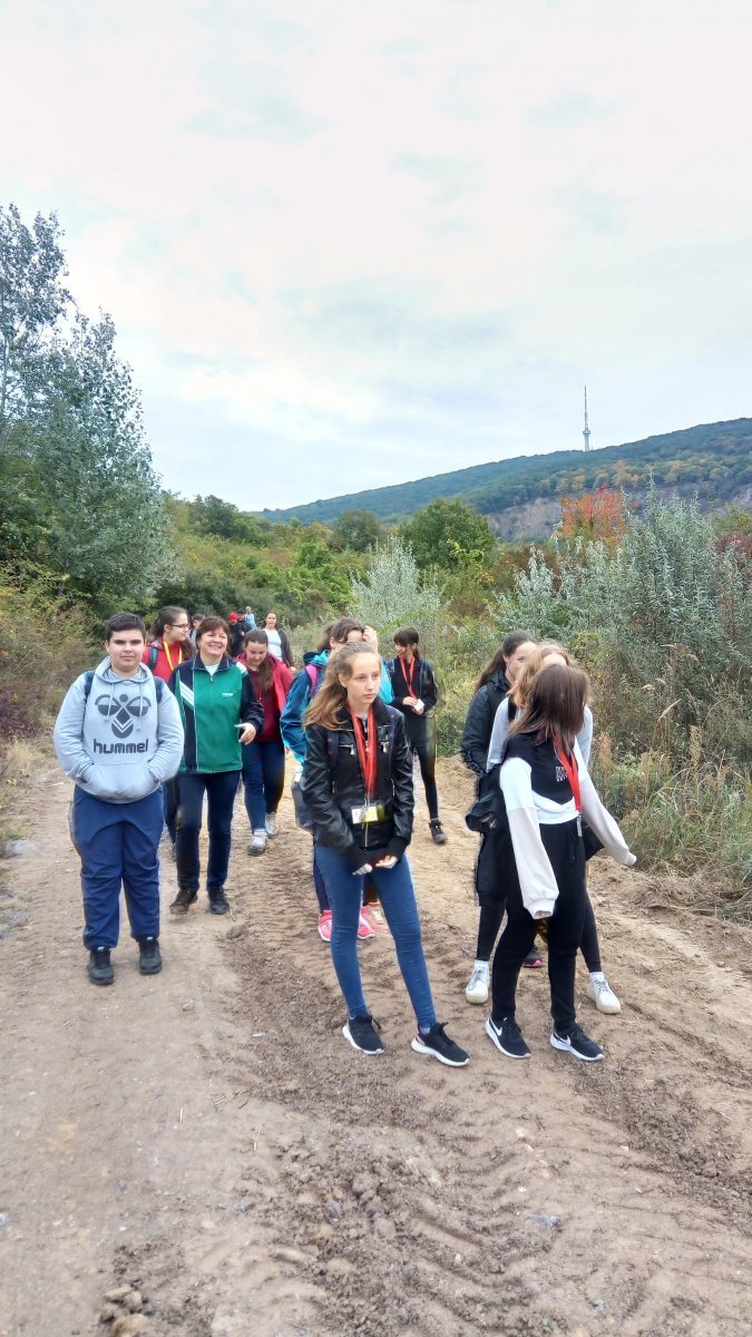 Szőlősorok mellett vitt utunk, seregélyeket riasztottak 10 percenként, hajtóvadászathoz hasonló volt a sorozatos lövések miatt a helyzet. Ettől függetlenül haladtunk előre. Annyira nem siettünk, hogy a táj szépségét figyelmen kívül hagyjuk és a hely élővilágát szemügyre ne vegyük. Az erdő összetétele vegyes volt: a hegy lábánál még csak bokros, ligetes volt kökénnyel és csipkebogyóval, majd a hárs, juhar, kőris kezdett dominanciába, de megjelent az erdei fenyő és a tölgy is. Vaddisznót nem láttunk, de őzet és szajkót igen.