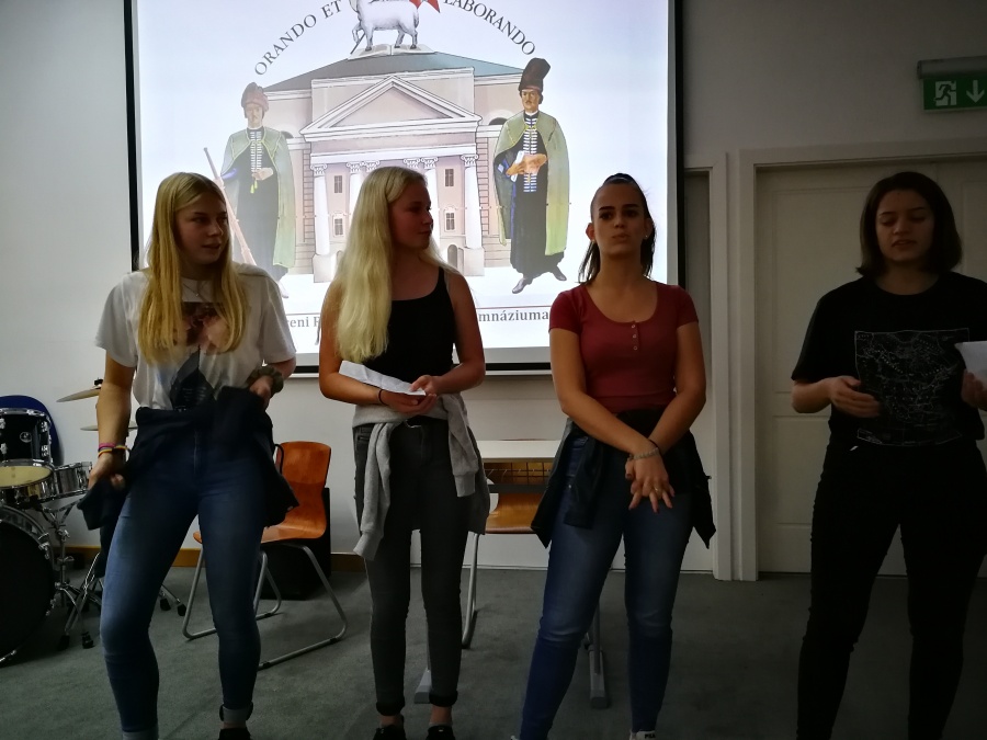 A keddi nap délelőttjét az Agóra Tudományos és Élményközpontban töltötték a német diákok. Ebéd után Győri János tanár úr mutatta be nekik a Kollégiumot és a Nagytemplomot. Délután 17 órától került sor a búcsúbulira, melyet a gimnázium nagy előadójában tartottunk. Itt a 4 fős német-magyar csoportok bemutathatták az általuk elkészített színdarabjaikat, melyeknek a német és a magyar kultúra közötti különbséget kellett bemutatniuk. Ezután egy jó hangulatú táncházzal zárult az este, ahol magyar néptáncot tanítottunk a cserediákoknak.