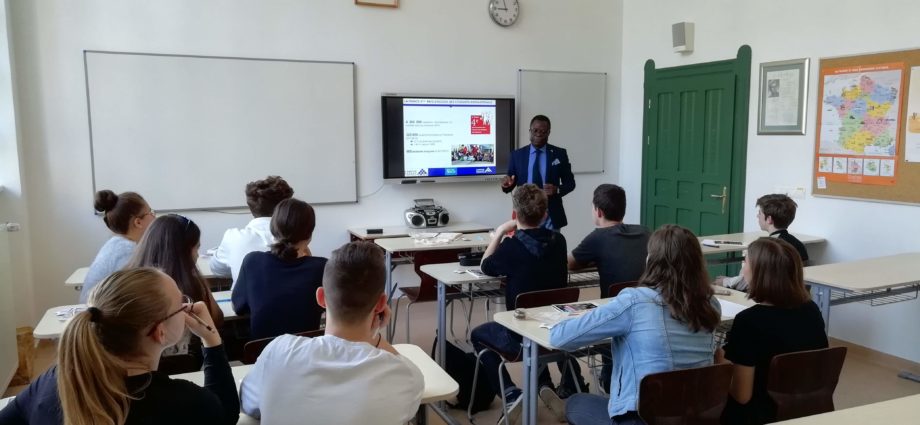 A Francia Intézet munkatársa, Bob Kaba Loemba járt nálunk. Előadást tartott diákjainknak franciaországi továbbtanulási lehetőségekről. Az ország egyetemei, alap- és mesterképzései ugyanis a francia nyelvtudással rendelkező magyar fiatalok számára is nyitva állnak, diákjaink jó eséllyel ösztöndíjakra is pályázhatnak.