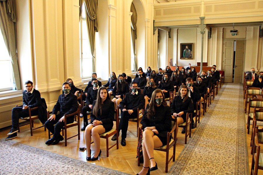 Komoly fiatalok várakoznak feketébe öltözve, szemük sarkában játszi mosoly, tekintetükben büszkeség. A végzős refisek, akik arra várnak, hogy elhangozzék a nevük, és osztályfőnökük a bocskai-öltöny mellére tűzze a Debreceni Református Kollégium Gimnáziumának színét viselő zöld kis szalagot, az évszámmal és az iskola monogramjával: DRKG 2020. Kinek három, kinek négy év áll a háta mögött, sok élmény, barátság és persze a megszerzett tudás. Érzik, hogy ettől a pillanattól kezdve ők már lassanként búcsúzkodni kezdenek iskolájuktól. Rajtuk a jel: ők a maturandusok, érettségire készülő felelősségteljes fiatalok.