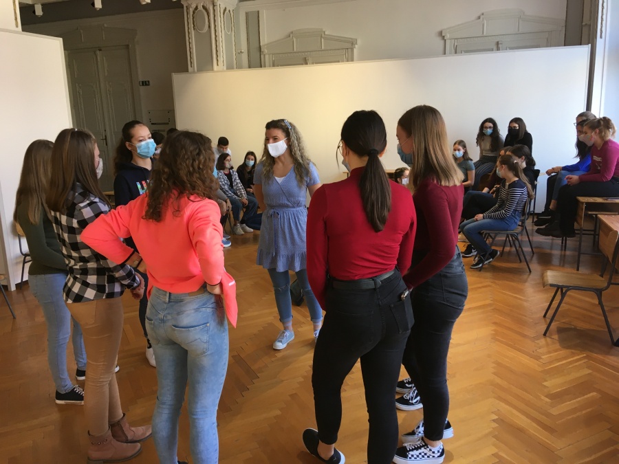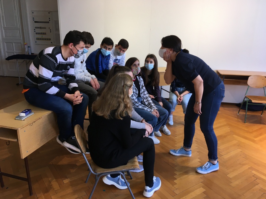 Mit is jelent ez az izgalmas műfaj, miben más, mint egy átlagos színházi élmény? Abban, hogy a néző – ebben az esetben a diákok -, maguk is résztvevővé válnak a közös gondolkodás által az interaktív előadás során. Sőt mivel a történet több ponton kinyílik, fiktív élethelyzetben együtt, a többiekkel kell beszélgessenek a társadalmi problémákat érintő krízishelyzetekről, emberi konfliktusokról, érzelmekről és döntésekről. Ebben az évben, a Kimondhatatlan című darabban, két középiskolás lány történetén keresztül a családon belüli erőszak, agresszió és megalázás témájával szembesültek a fiatalok. Ők maguk is valódi részeseivé váltak a lányok életének a Csokonai Színház művészeinek játéka által, látva a folyamatosan változó tekintetüket, hol összeszoruló, hol kiengedő öklüket, hallva kimerevített kulcspontokon a szavaikat. Indulatok, érzelmek, gondolatok. Bevonódva, de mégis csak szerepet játszva, védetten. Érzékenyítés egy élmény által kimondva akár a kimondhatatlant.