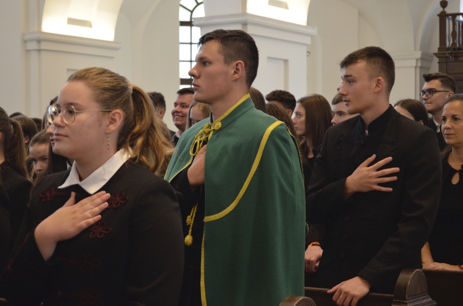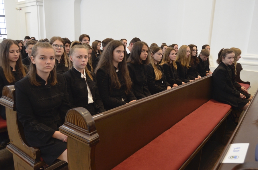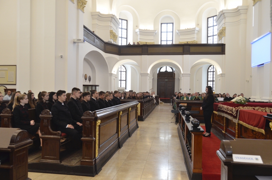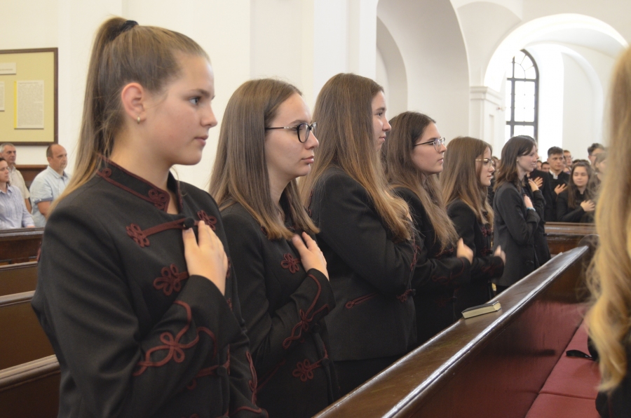 Nagy öröm volt, hogy ezt a tanévet tanárok, diákok és szüleik újra együtt, egyszerre nyithattuk meg a Nagytemplomban augusztus 29-én délután. Az Igét Fehér Norbert, vezető vallástanár hirdette Márk evangéliumából a megpróbáltatások között is megjelenő, Istentől jövő reménységről, majd Ivánné Nagy Bernadett Erzsébet igazgatónő beszélt terveinkről és az iskolai életünk sokszínűségéről. Kollégiumi vizsgát tett, 10-es évfolyamos tanulóink befogadást nyertek a 483 éves iskolánk diákpolgárai sorába. Az istentiszteletet a Kántus és egyik diákunk, Németh Marietta (11.b) éneke színesítette.