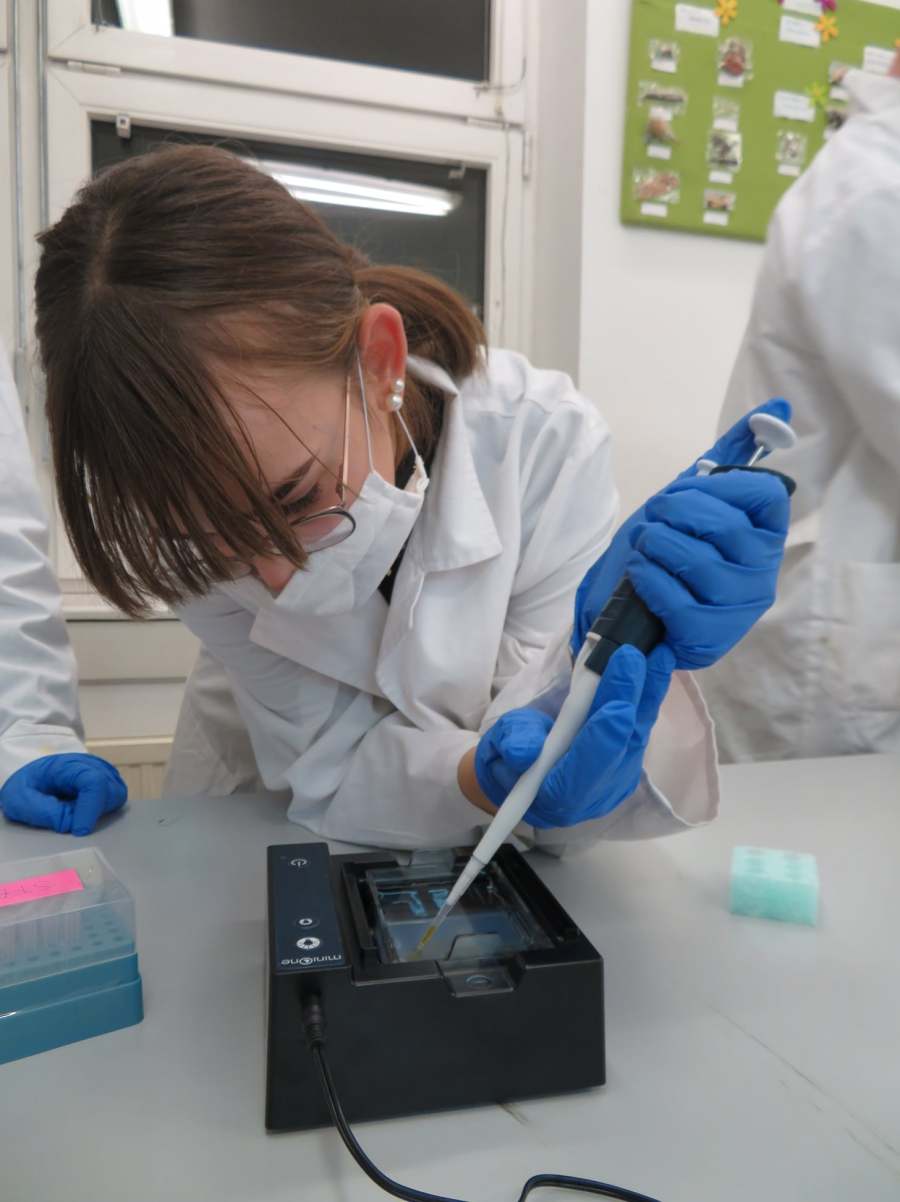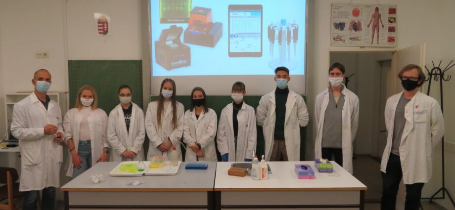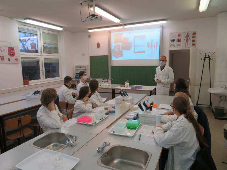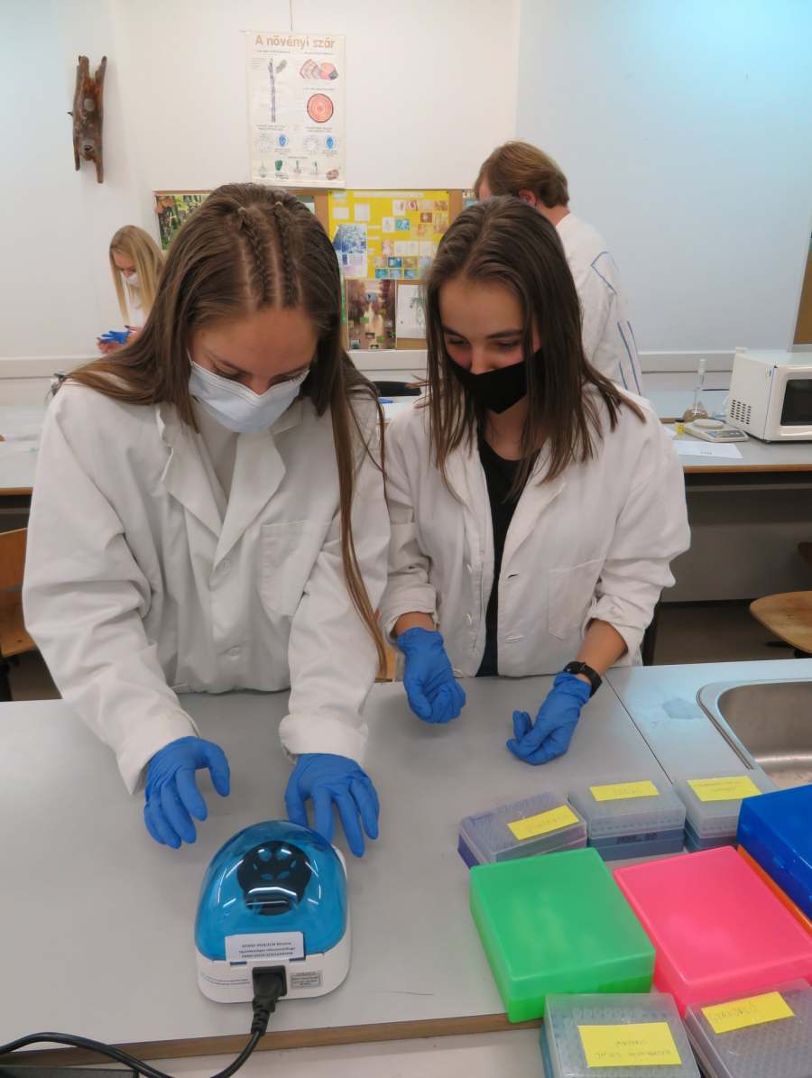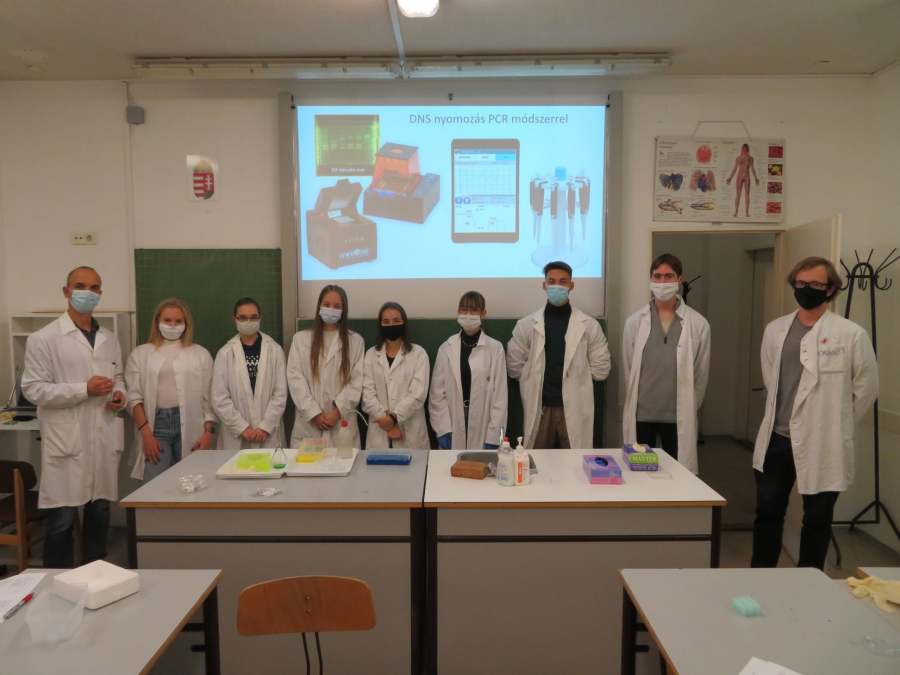 A Nemzeti Tudós Akadémia középiskolai programjának regionális központjába, a Tóth Árpád Gimnáziumba látogattunk el a mai nap során. A 8 tanuló 3 csoportban igyekezett felderíteni egy „virtuális gyilkosság” tettesének személyét. Ehhez a DNS sokszorozását (PCR) és a gélelektroforézis technikáját használtuk fel, de megismerkedtünk az automata pipetta és a centrifuga használatával is. Köszönjük Gőz József tanár úrnak, a program regionális vezetőjének a szakszerű, és nagyszerű gyakorlatot!