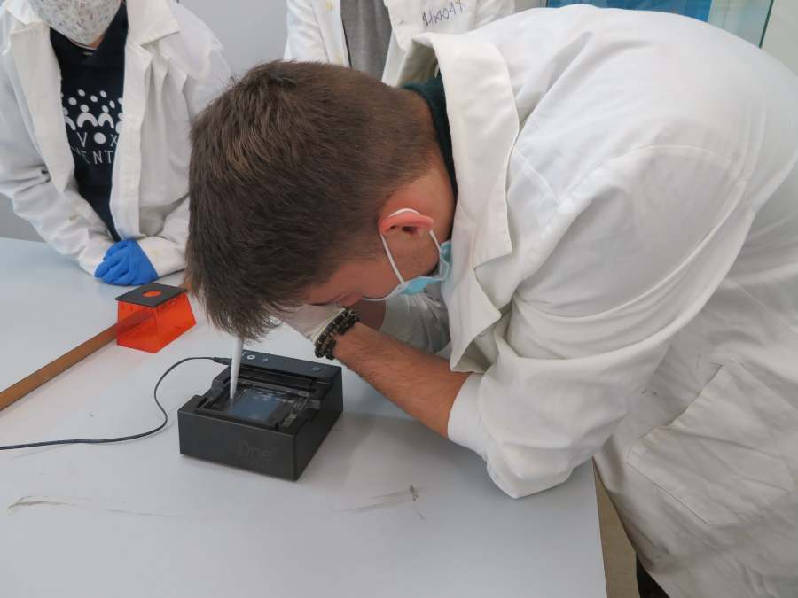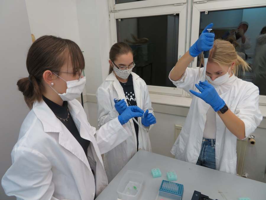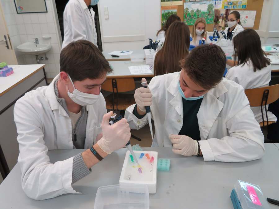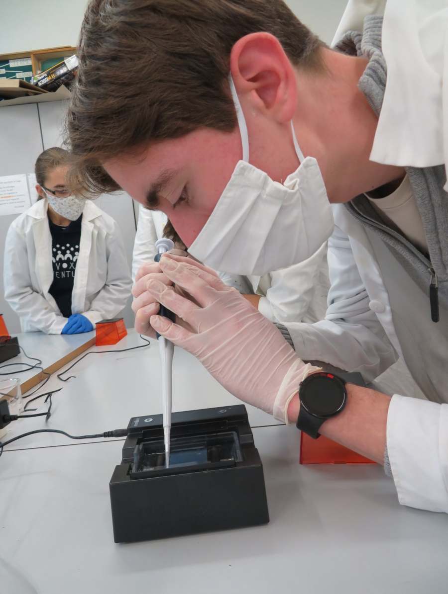 A Nemzeti Tudós Akadémia középiskolai programjának regionális központjába, a Tóth Árpád Gimnáziumba látogattunk el a mai nap során. A 8 tanuló 3 csoportban igyekezett felderíteni egy „virtuális gyilkosság” tettesének személyét. Ehhez a DNS sokszorozását (PCR) és a gélelektroforézis technikáját használtuk fel, de megismerkedtünk az automata pipetta és a centrifuga használatával is. Köszönjük Gőz József tanár úrnak, a program regionális vezetőjének a szakszerű, és nagyszerű gyakorlatot!