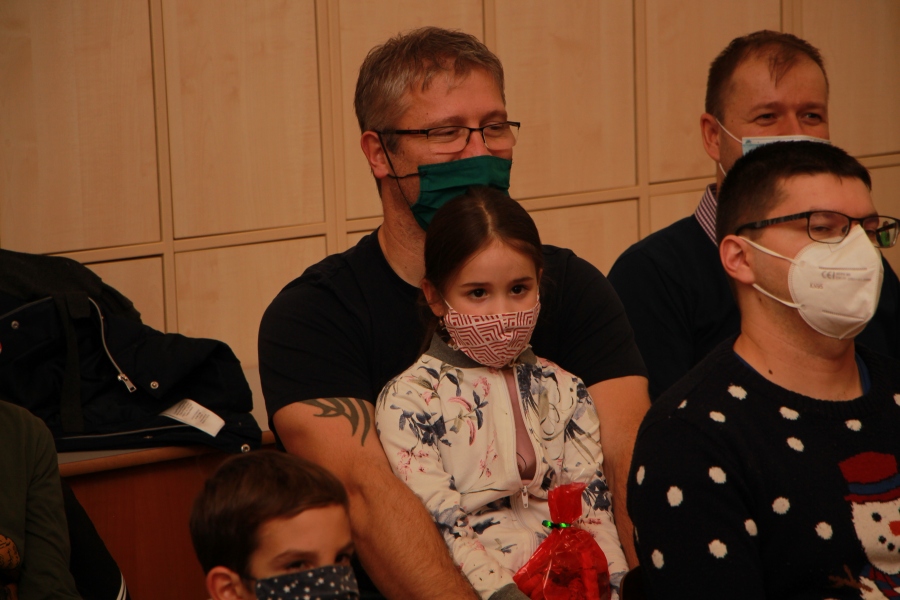 Tegnap délután fárasztó útja végén a gimnáziumunkba is megérkezett a tanárok gyermekeihez a hosszú szakállú télapó rénszarvasaival és segítő manóival.
