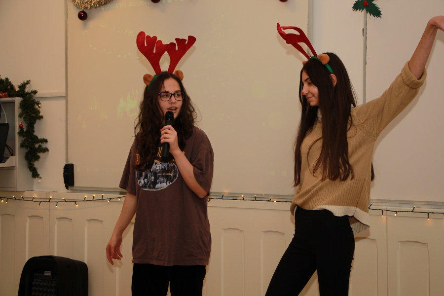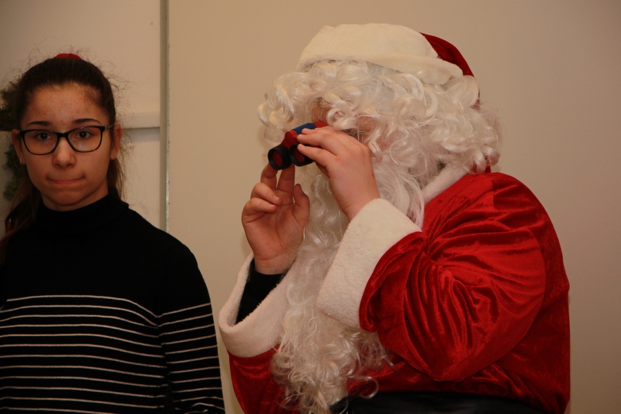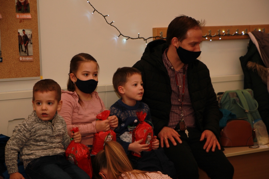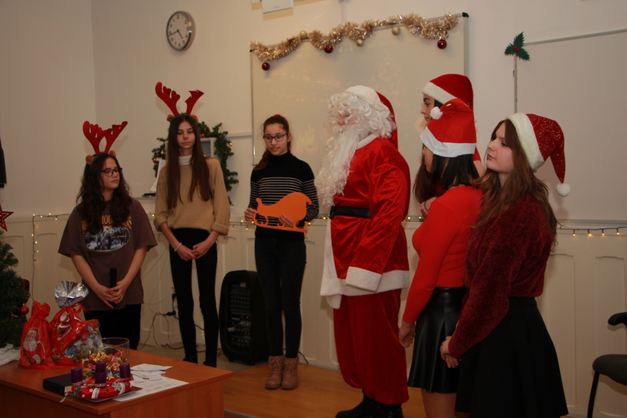 Tegnap délután fárasztó útja végén a gimnáziumunkba is megérkezett a tanárok gyermekeihez a hosszú szakállú télapó rénszarvasaival és segítő manóival.