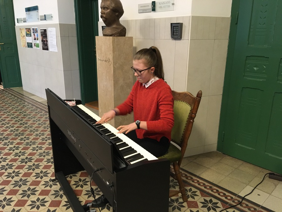Felcsendült újra a muzsika a nagyszünetben, ezúttal Karsai Janka (9.D) előadásában diákjaink és tanáraink örömére. 2022-01-23