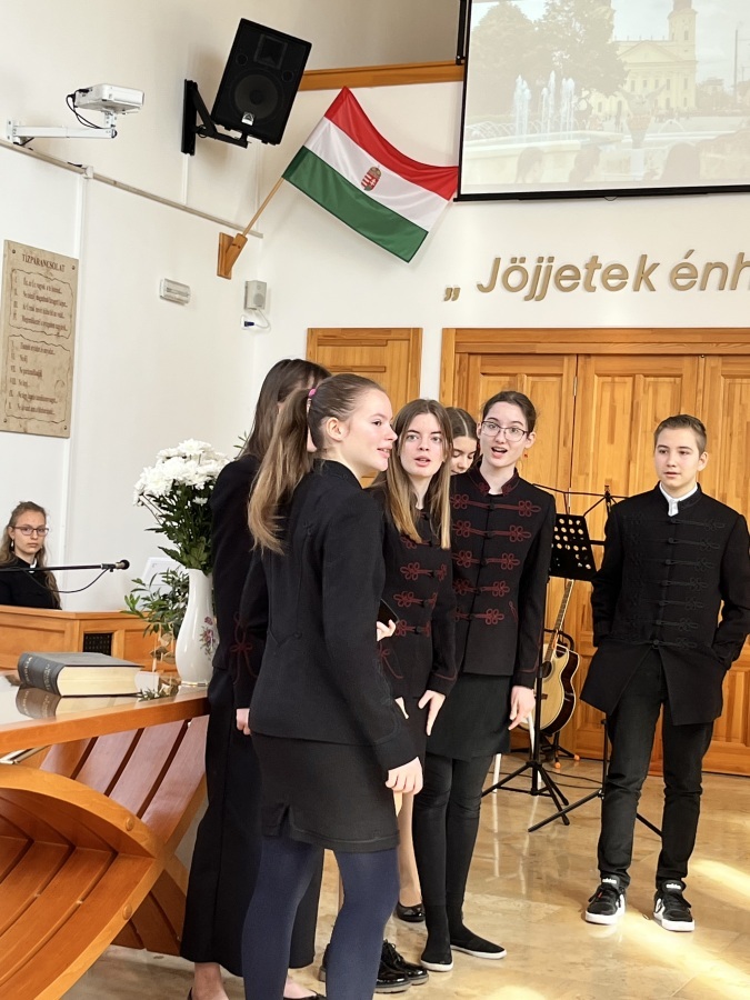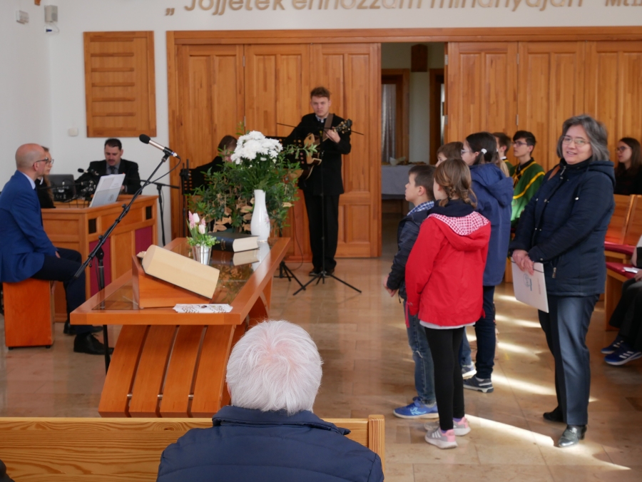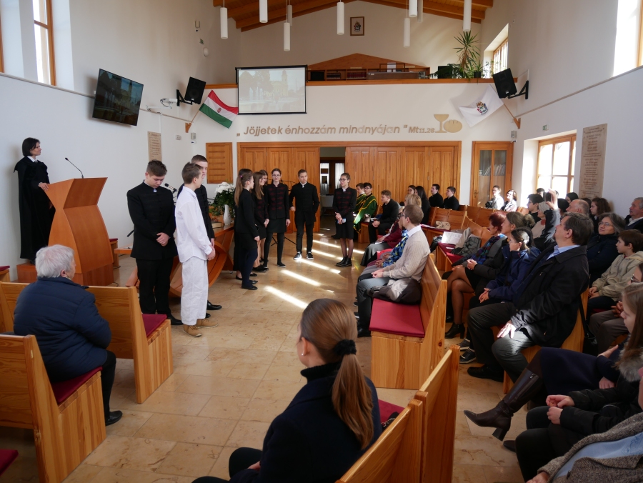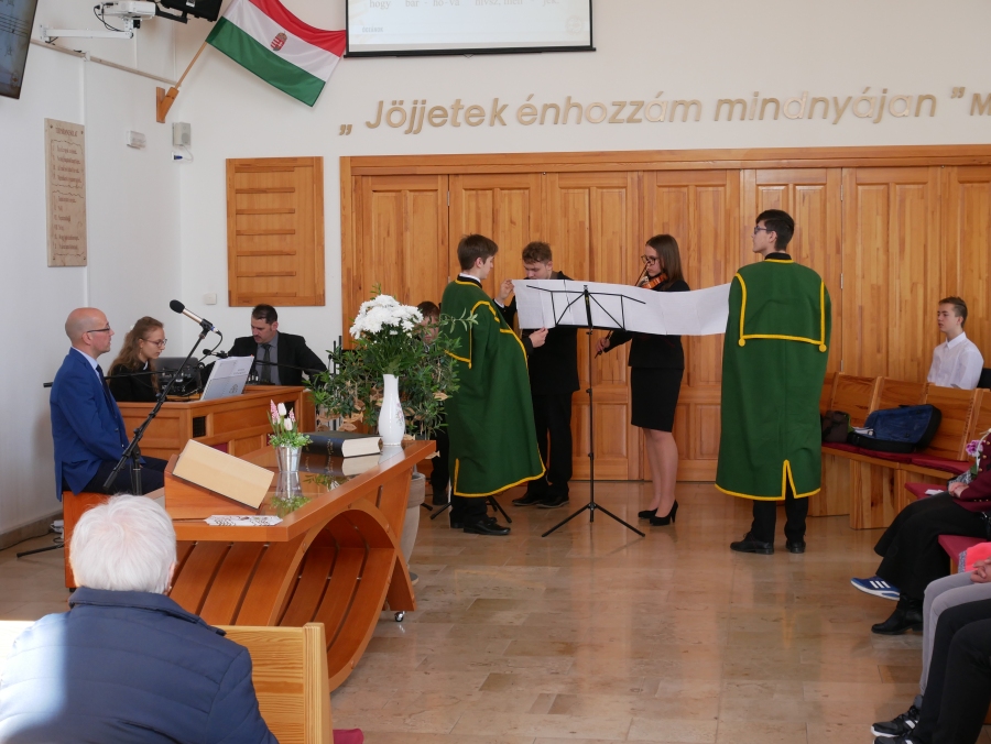 Vasárnap a 9.B osztály kiszálláson járt az egyházközségben Kuruczné Nagy Andrea osztályfőnök vezetésével. Zákeus történetét dolgozták fel a diákok által írt és előadott színdarabban, amelyhez kötődött az iskolalkész, Berényiné Csinády Melinda igei szolgálata is. Az istentiszteletet gazdagította sokszínű zenés és verses szolgálat, illetve a tógás diákok jelenléte. Köszönjük a gyülekezet kedvességét, vendégszeretetét!