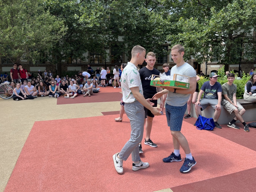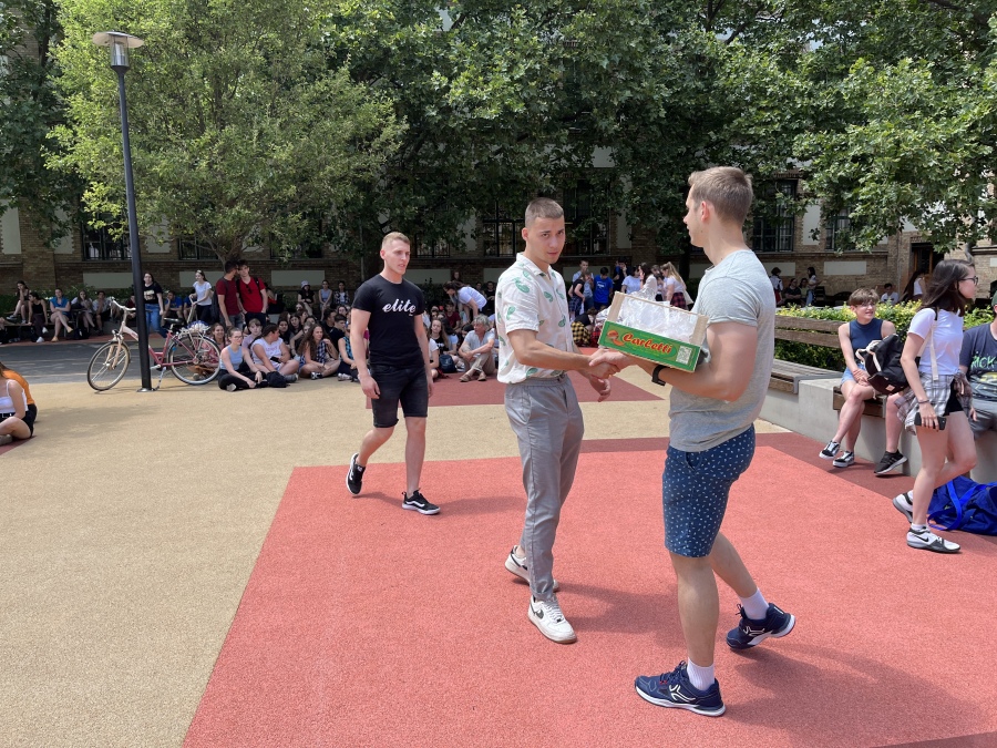 Másnap egy sokszínű feladatokból álló akadálypályán mérték össze osztályaink ügyességüket. Sok más feladat mellett, a hagyományőrzés jegyében kukoricát morzsoltak, illatokat azonosítottak, montázsokat készítettek és természetesen nem maradhattak el az erőnléti és logikai feladatok sem. A nap végén közös country táncra gyűltünk össze az iskolaudvaron, majd az eredményhirdetés keretében minden osztály egy nagy láda gyümölcsben részesült, amelyet percek alatt el is fogyasztottak éhes tizenéveseink. A versenyt a 10.A osztály nyerte, akiknek ezúton is gratulálunk!