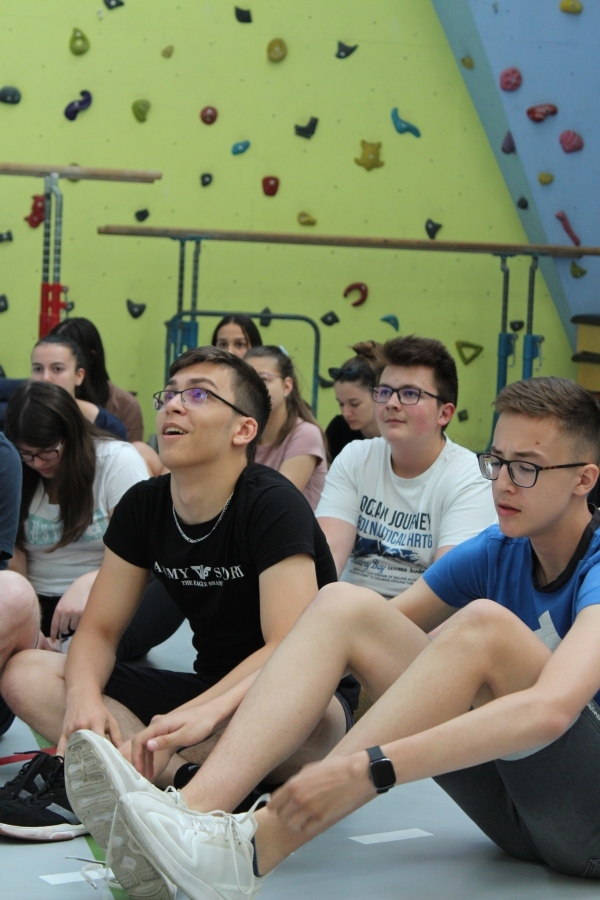 A tanévet az egészséges életmód jegyében sokszínű programmal zártuk. Első nap a minden osztály a stadionnál kezdte a reggelt futással, amely jól megmozgatott tanárt és diákot egyaránt. A lelkes fiataljaink levezetésként beszélgetve visszasétáltak a gimnáziumba, ahol évfolyamonként különböző érdekes programok várták őket. Előadást hallhattak a Hortobágyi Nemzeti Park életéről és a fényszennyezésről, továbbá „Debrecen rejtett kincseiről”, majd egy megható filmet nézhettek meg az elefántok életéről. Legnagyobb sikere a segítőkutyáknak volt, akik kedves szelidségükkel és okosságukkal meghódították a tizenévesek szívét. Szép kiegészítést jelentett az ásványvásár a folyosón a ragyogó ékszerekkel és csodálatos, ritka kövekkel.