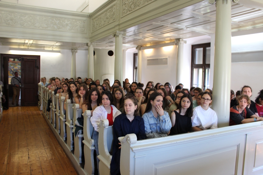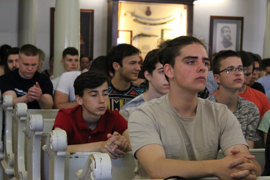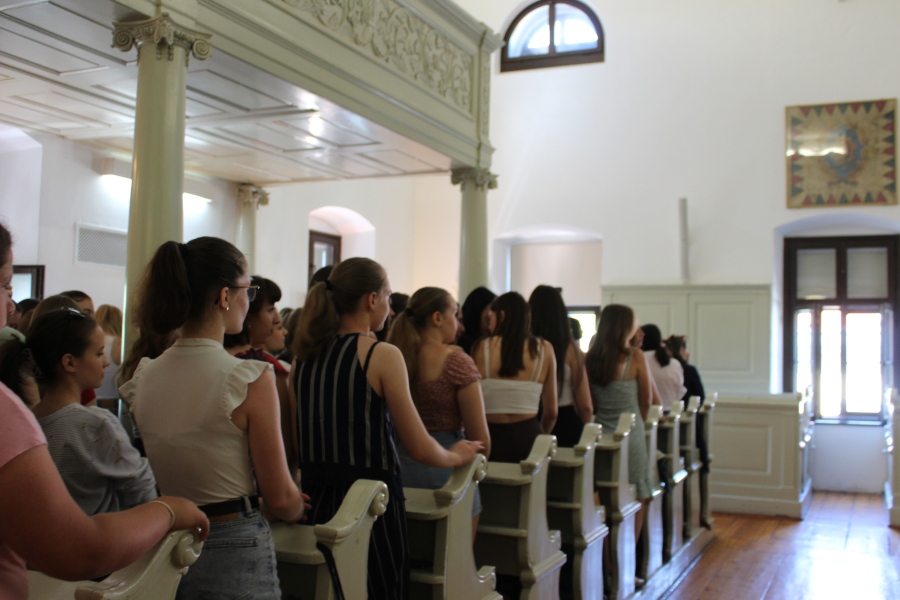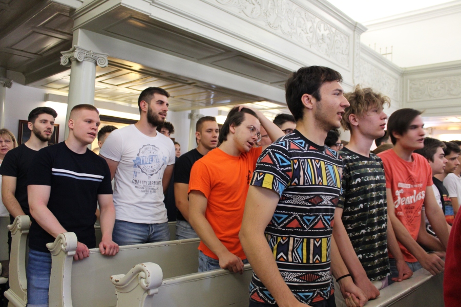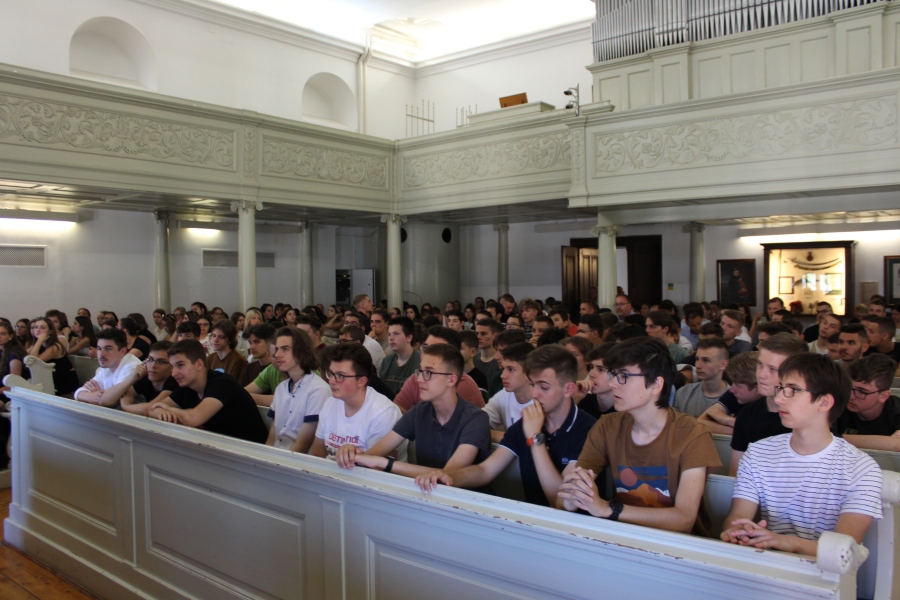 Istentisztelettel zártuk a 2021-2022-es tanévet. Minden évben megérintő, ahogy négyszáz diákunk és tanári kar együtt több szólamban és kánonban dicséri az Urat az ősi zsoltárokkal és énekekkel. Ezúttal azonban nem csupán egymás életére kértünk áldást a nyári szünet előtti utolsó percekben, hanem kedves kollégánk, Kurgyis András lelkész, vallás- és énektanáréra is, aki utoljára szolgált közöttünk az Oratórium szószékéről nyugdíjba vonulása előtt. Harmincnyolc év alatt diákok generációira hatott hívő emberségével, magas szakmaiságával, diákszeretétével. Egész eddigi életére igaz volt a 134. zsoltár gondolat, hogy az Úr szolgájaként mindig víg szívvel áldotta az Úrat, és szolgált az ő házában hűséggel.
