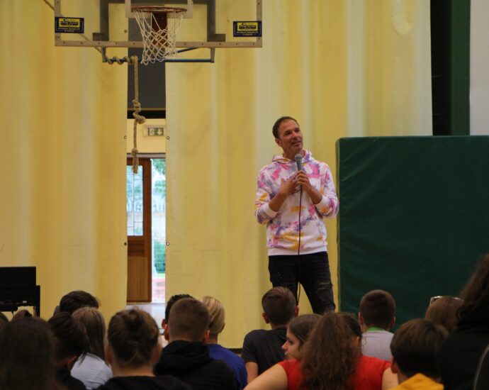A tanévkezdő csendesnapok zárásaként egy személyes hangvételű koncerten vehettek részt diákjaink. Pintér Béla őszintén mesélt jól ismert dalai között fiataljainknak élete magasságairól, sikereiről és mélységeiről, sőt kudarcairól is. „A Bárány dicsőségét hirdetem” zengte együtt a hallgatóság az énekessel a jóhangulatú este végén.Olvass tovább