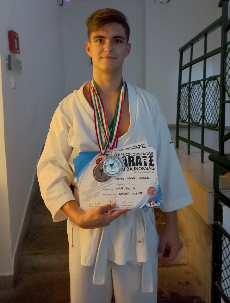 Hegyes József iskolánk 12. B osztályos tanulója az elmúlt hétvégén Szerencsen vett részt Shotokan karate országos felkészülési versenyen. A sok gyakorlásnak meg lett az eredménye, diákunk öt éremmel tért haza. Egyéni és csapat kategóriákban is képviselte iskolánkat és egyesületünket. Küzdelemben és formagyakorlatban is szép teljesítményt nyújtott a saját és magasabb övfokozatú kategóriákban.