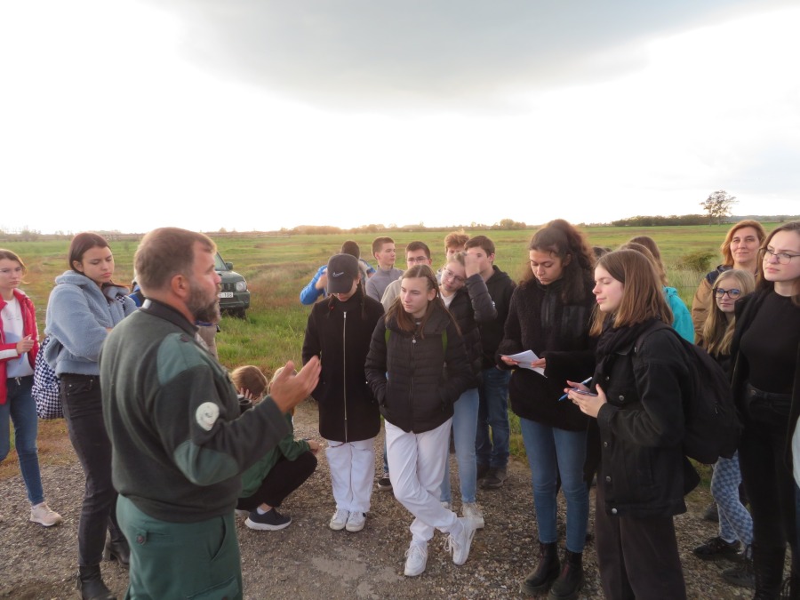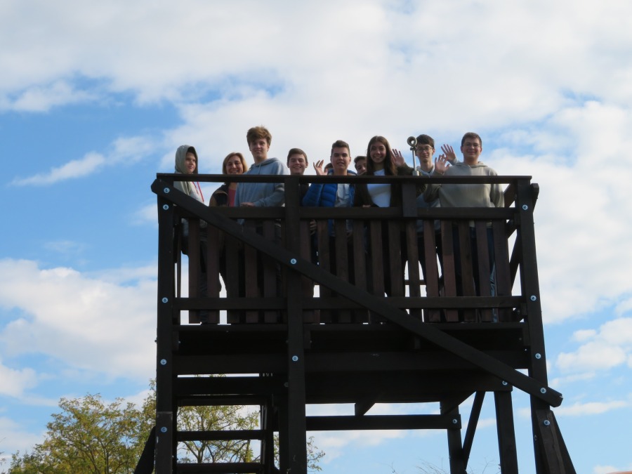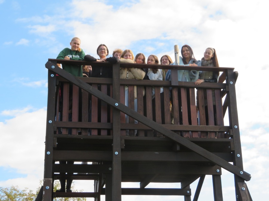 Október 19-én a 9. b biológia-kémia és matematika tagozatos diákjai egy hortobágyi szakmai kiránduláson vettek részt. Először a Szálkahalomnál álltunk meg, ahol a Nemzeti Park legfontosabb jellemzői hangzottak el. Ezután Hortobágy faluban megkoszorúztuk a kitelepítések emlékművét, ahol Szabó Dóra osztályfőnök beszélt a történelmi háttérről. A Vonuláskutató Állomáson Molnár Márton, iskolánk korábbi diákja vezetett be minket a madárgyűrűzés alapjaiba. A nap zárásaként a 33-as út melletti helyszínen több ezer daru „behúzását” figyelhettük meg a csodálatos naplementében, amint az éjszakázó helyükre repültek. Itt Szilágyi Attila természetvédő őr beszélt a páratlan természeti jelenségről.