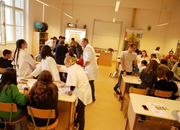 Megtartottuk idei első tudományos szakkörünket 7-8-os diákoknak biológiai témában. Ezúttal a vázrendszer megfigyelése volt a cél. A gyerekek különösen örültek, amikor a röntgen képek elemzése után csirkeszárny boncolására és megfigyelésére került sor. Izgalmas volt megfigyelni a csipeszek segítségével szakszerűen a sok apró részletet, amelyek ilyen formában újdonságként hatottak számukra. SzeretettelOlvass tovább