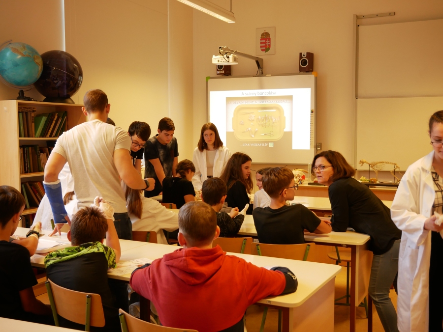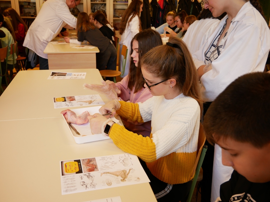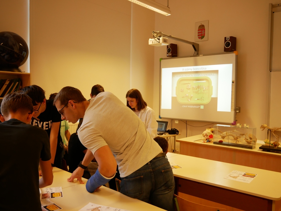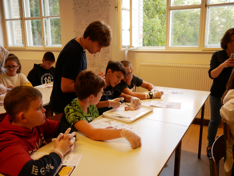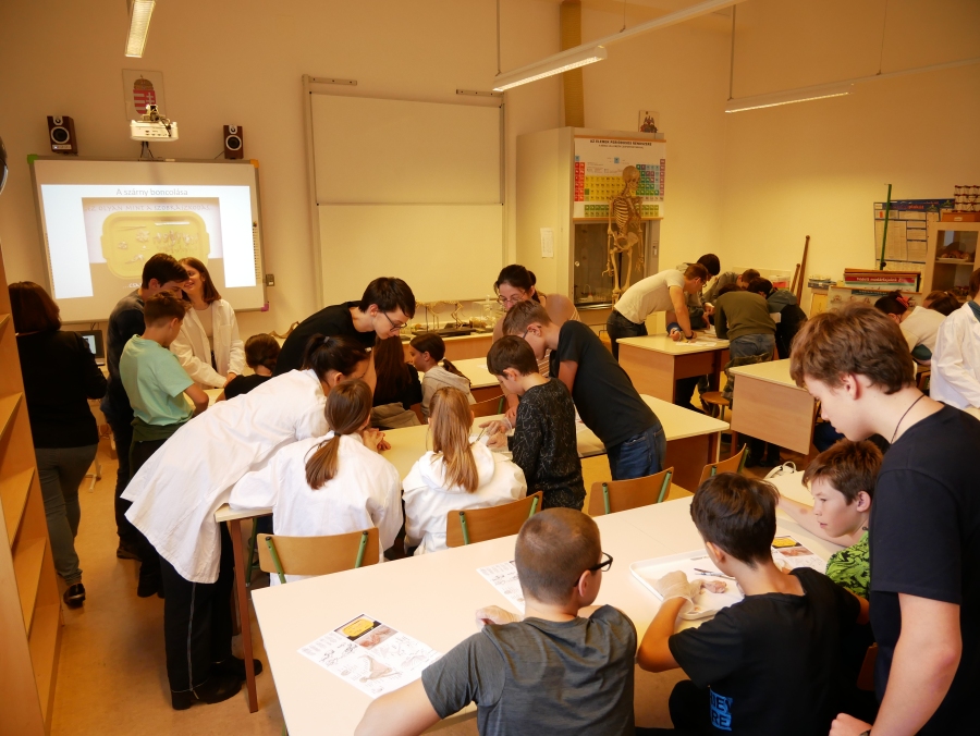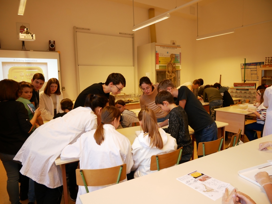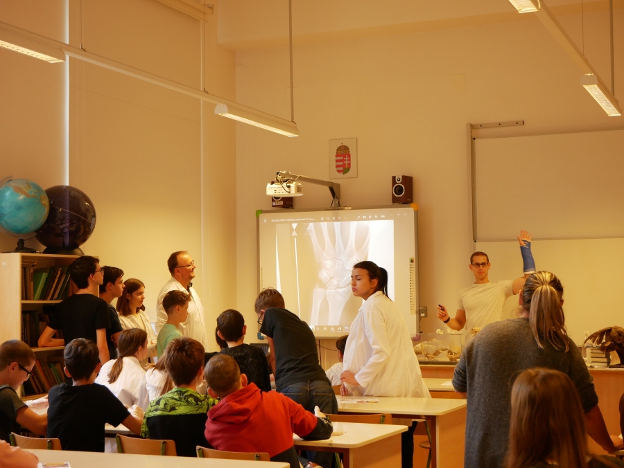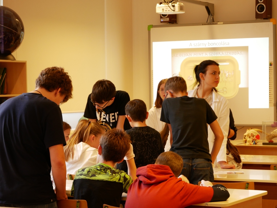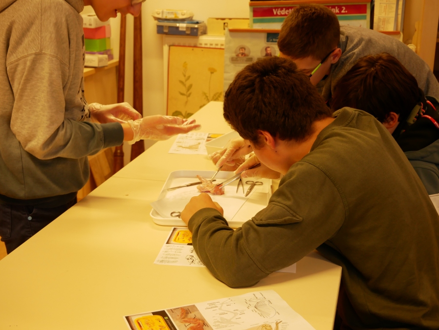 Megtartottuk idei első tudományos szakkörünket 7-8-os diákoknak biológiai témában. Ezúttal a vázrendszer megfigyelése volt a cél. A gyerekek különösen örültek, amikor a röntgen képek elemzése után csirkeszárny boncolására és megfigyelésére került sor. Izgalmas volt megfigyelni a csipeszek segítségével szakszerűen a sok apró részletet, amelyek ilyen formában újdonságként hatottak számukra.