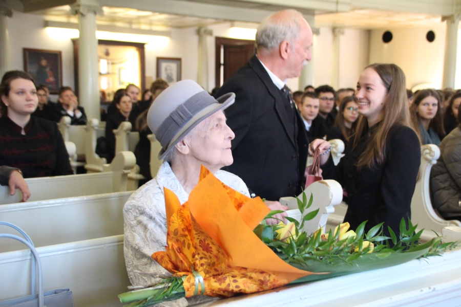 A műsor első felében végzős és tizenegyedikes diákjaink a nyelvi osztály közreműködésével elevenítették fel a nap eseményeit és az egykori diákok követeléseit. Ezután következett dr. Horváth Barnáné Perjéssy Márta, egykori teológushallgató személyes visszaemlékezése. Megindító volt hallgatni szüleinek és öccsének a debreceni eseményekről írt egykori levelét, majd tanúságtevő személyes hangvételű beszámolóját. Diákjaink elfogódott csendben hallgatták, hogyan csöppent bele a forradalom debreceni eseményeibe a náluk akkor alig idősebb teológa, mit jelentett számukra egyként felvonulni a belváros utcain, kiállni elveikért, megszólaltani követeléseiket, áldozatot vállalni, és a több ezres tömeg részeként kiáltani, hogy „Rabok tovább nem leszünk!” A személyes történet által új színt kaptak a történelem tankönyvek lapjairól ismert események és nemzeti jelképeink.