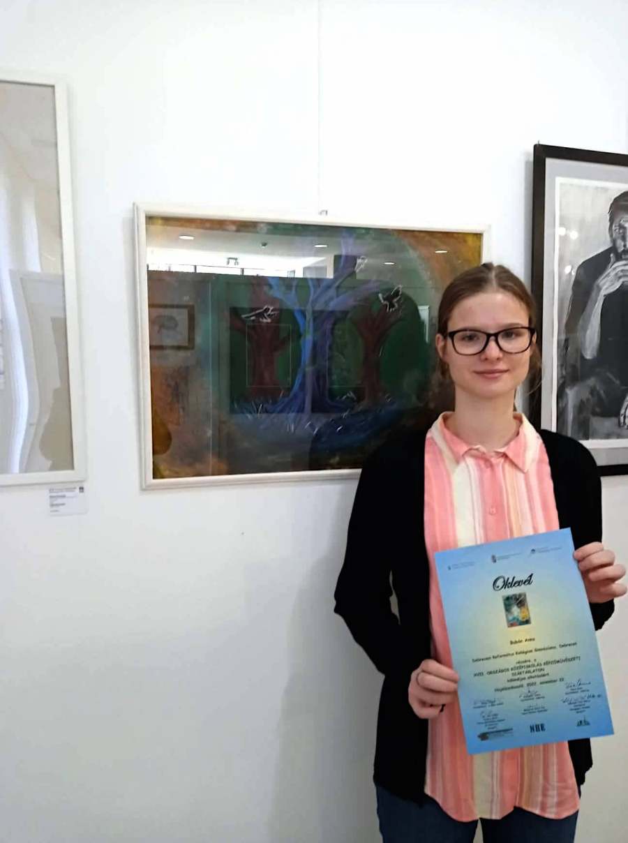Bubán Anna alkotói teljesítményének elismerése ebben a rangos mezőnyben csodálatos teljesítménynek, sikernek számít. A festményét élettel teli derű, mély spirituális ihletettség jellemzi, precíz festői kidolgozottsággal. A több mint 240 kiállított alkotás között még két diákunk Aszalós Evila és Ferenczy Regő alkotását is láthattuk.