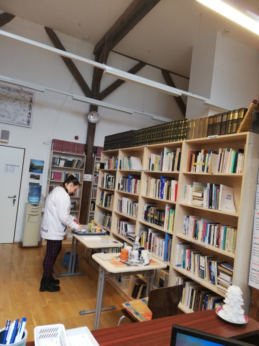 A megpihenés, tanulás, művelődés és a finom teák helye a KÖNYVTÁR! Minden diákot kedves szó és békés hangulat vár a tetőtérben. 2022-12-14
