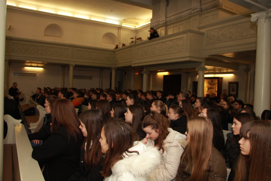 Ezúttal s csendesnapok keretében a Vox Antiqua Kamarakórust hívtuk meg hogy a zene hangjai és a szövegek üzenete „prédikáljon” közöttünk. Kiss Csaba karnagy vezényletével a diákok nagyon izgalmas zenei utat járhattak be a 16. századi Angliától a kortárs amerikai és magyar zeneszerzők művein át Kodály zsoltárfeldolgozásáig. Kovács Gegely kollégánk, a kórus egyik alapítótagja, bibliai szöveggel, versrészletekkel és izgalmas történetekkel egészítette ki a kórusműveket, hogy tizenéveseink még gazdagabb üzenetben részesülhessenek.
