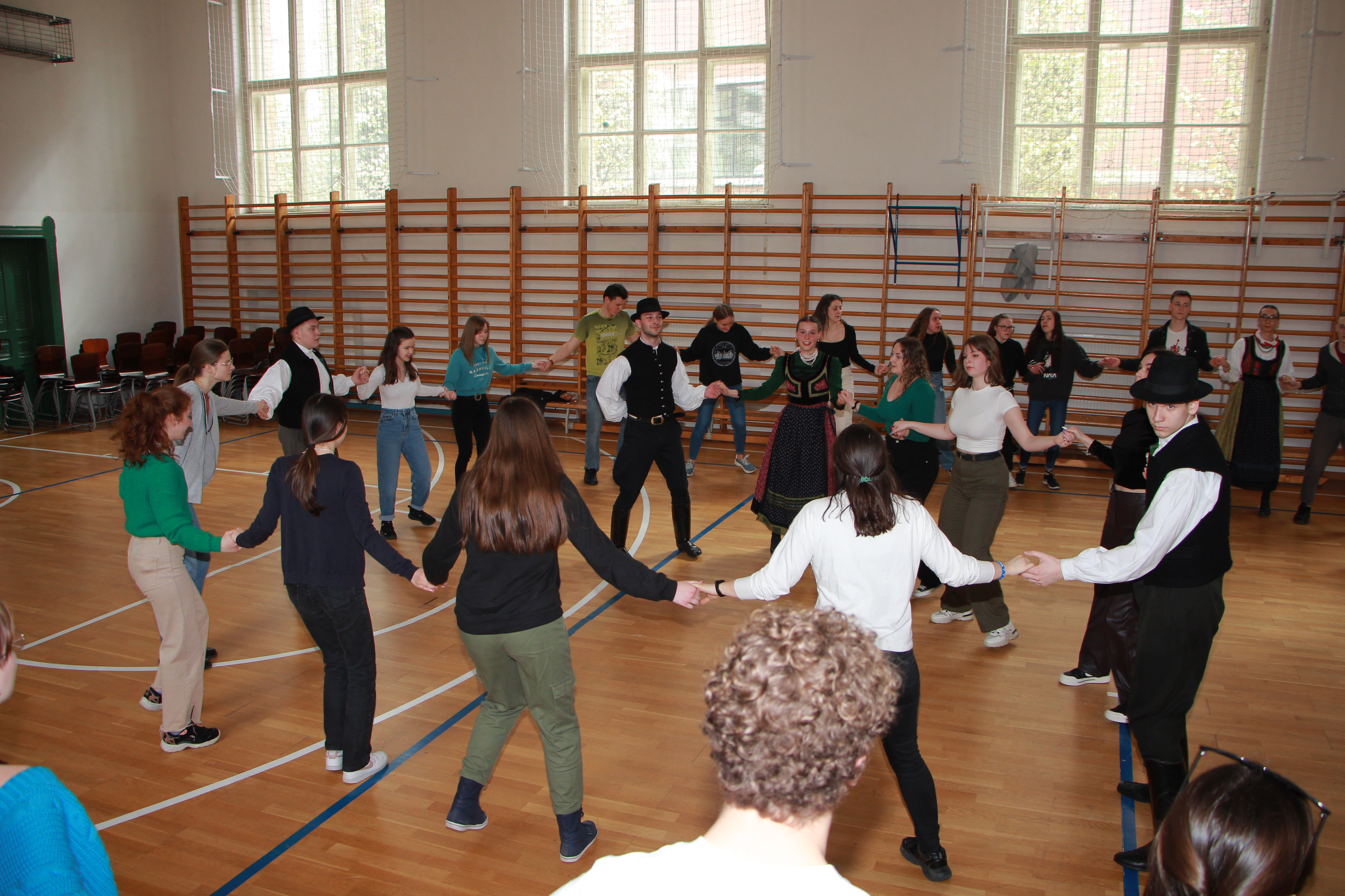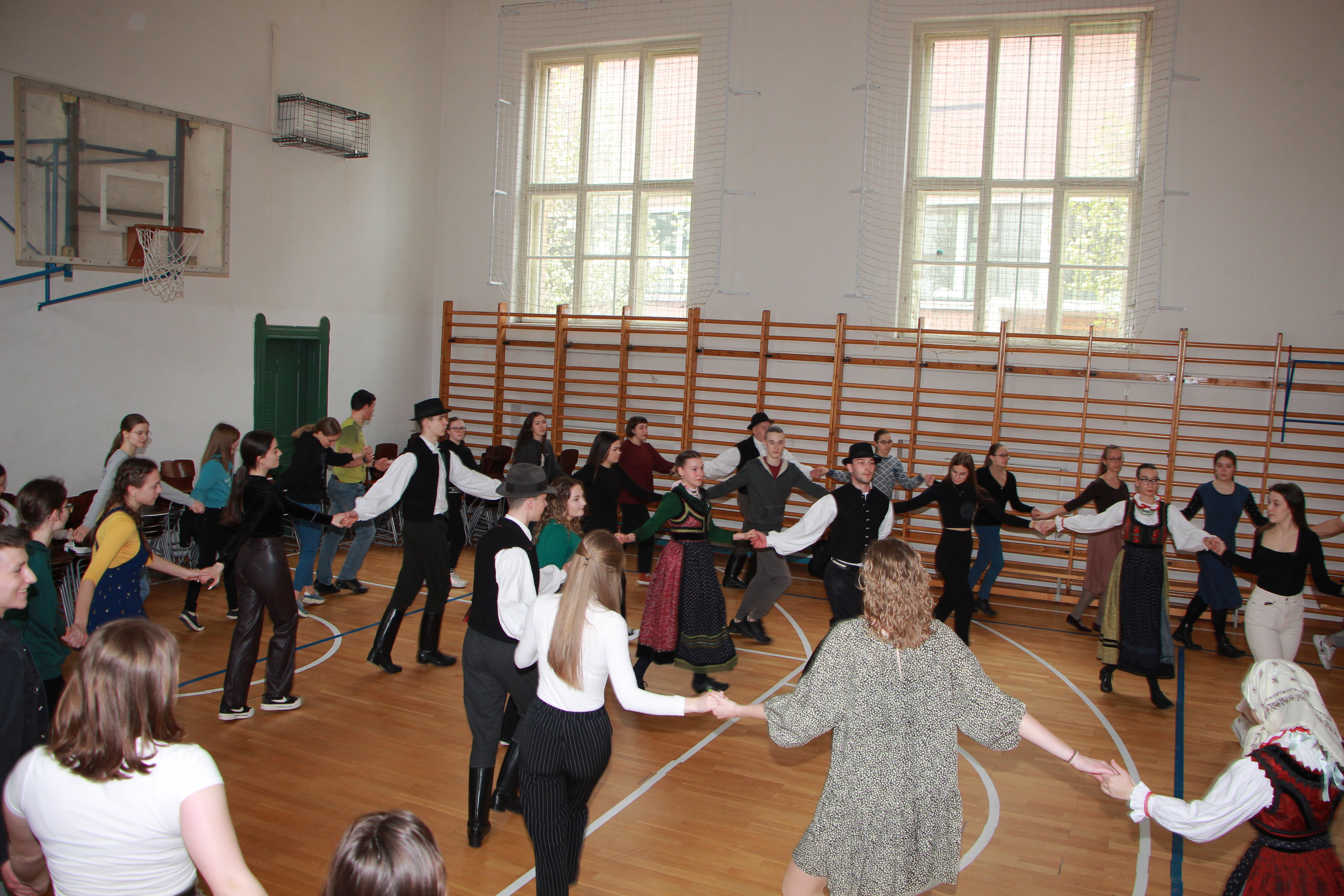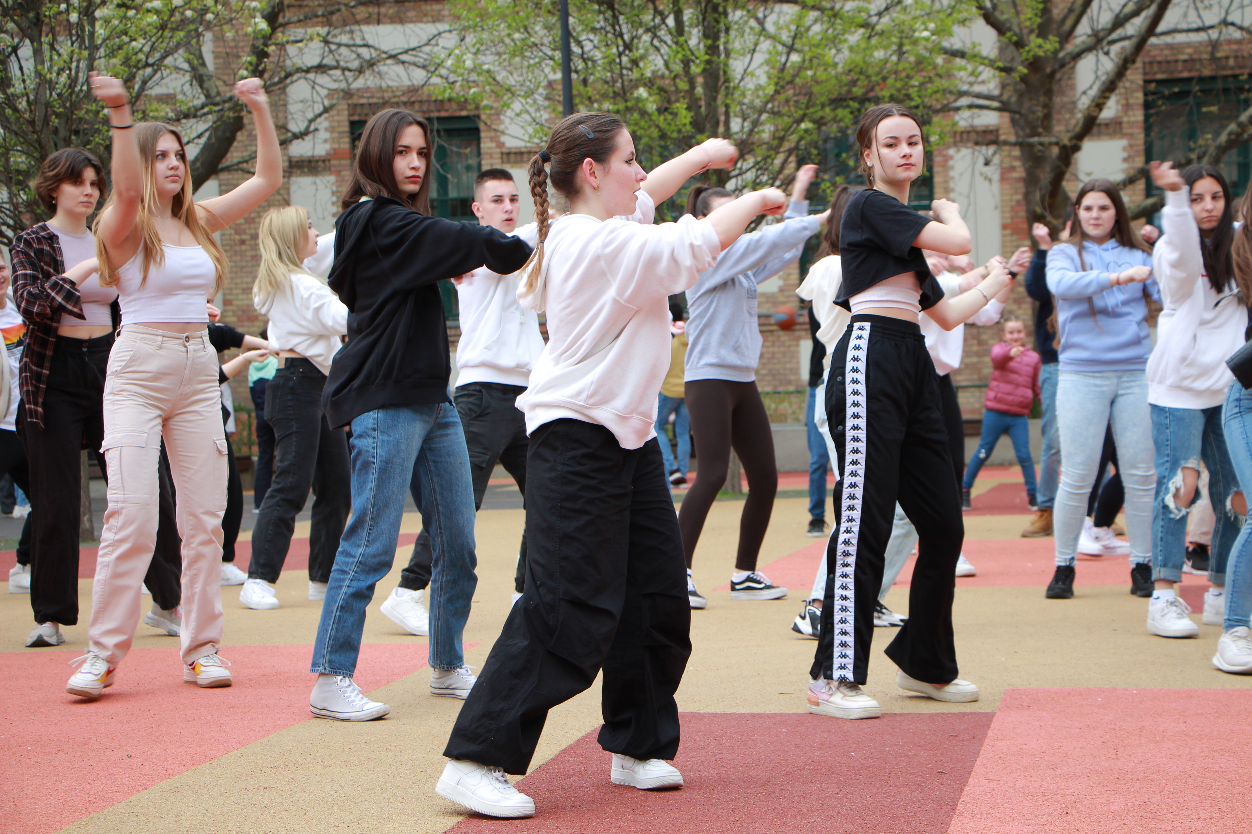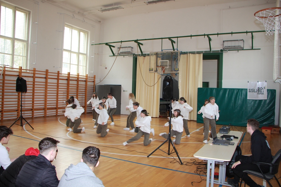 Diákönkormányzat újabb nagyszerű, egész napos programmal örvendeztette meg fiataljainkat. A nap első része a táncoké volt. Ezúton is köszönjük a Silver Wings Egyesület Fusion csapatának és a Hajdú Táncegyüttes táncosainak a segítségét, és diákjaink közül a Kis és Csige testvérek közreműködését. Jó volt látni, ahogy diákjaink elképesztő energiával és lelkesedéssel mozogtak a zene ütemére és ropták a táncot a tornateremben. Olyan jó volt a hangulat, hogy az udvaron még az általános iskolás gyerekek is bekapcsolódtak a nagyok programjába.