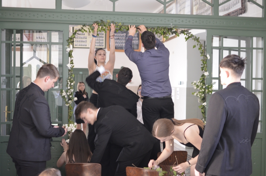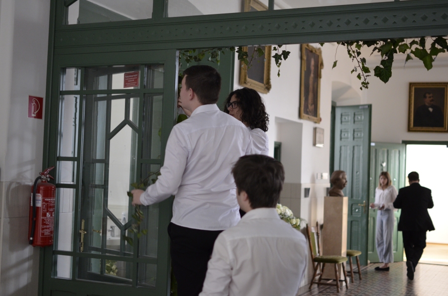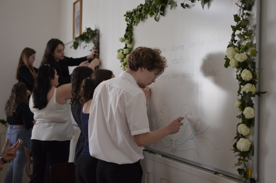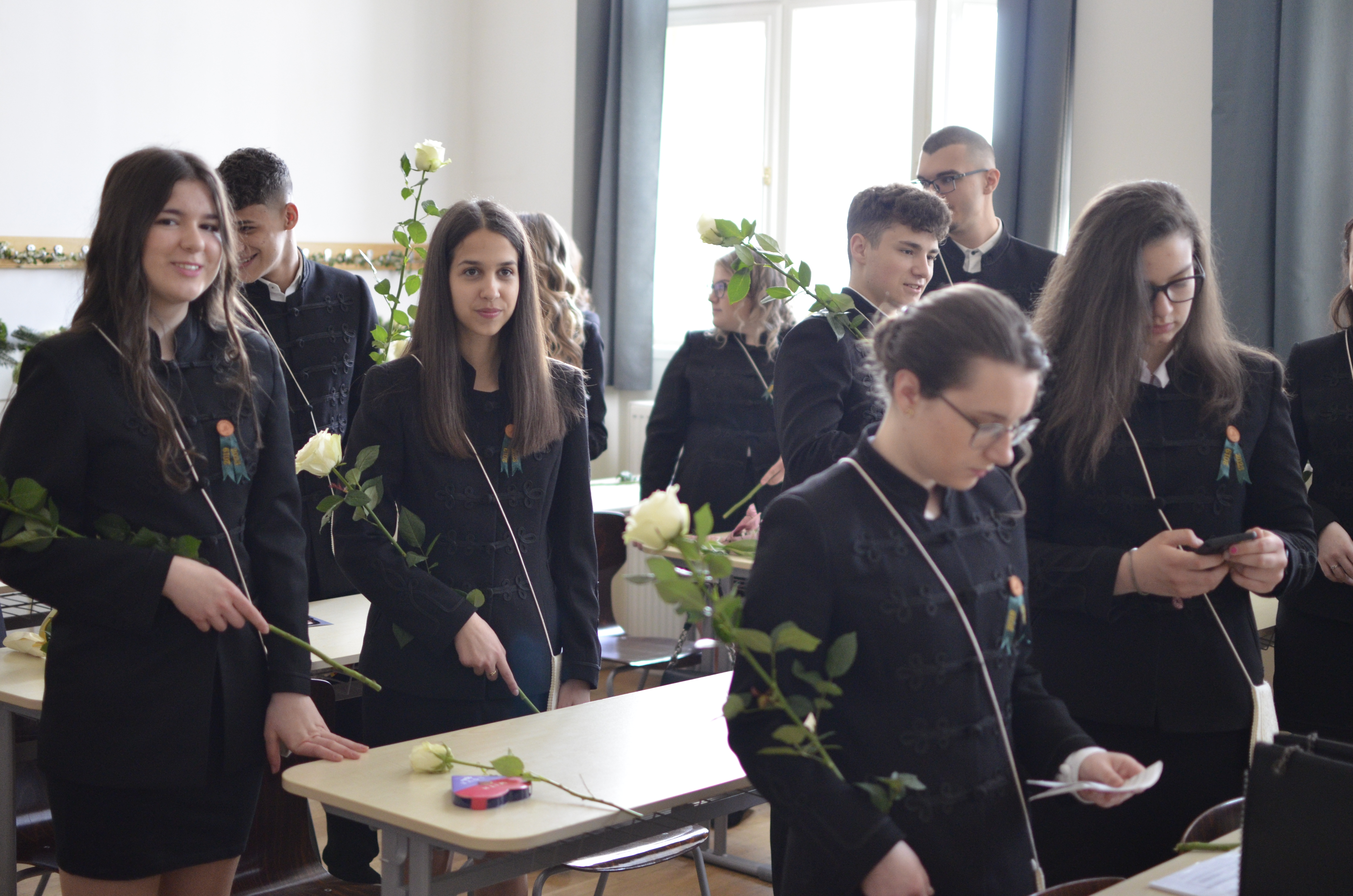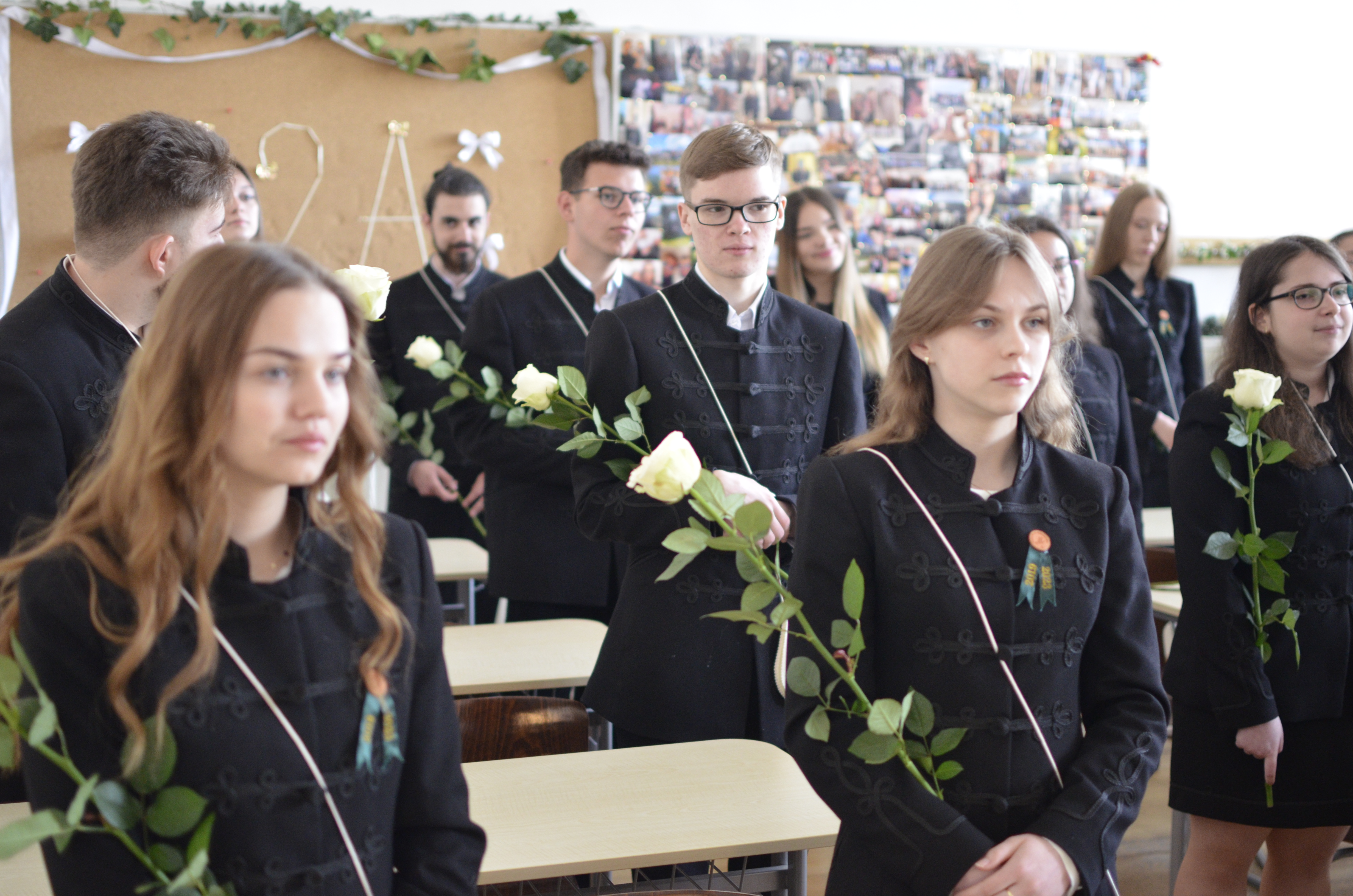 Szomorúan hálás szívvel búcsúztunk el három végzős osztályunktól. Kora reggel, hagyományainkhoz hűen, a 11. évfolyamosok által feldíszített folyosókon, a tanárok és diáktársak sorfala között, énekszóval köszönt el egykori iskolájától 82 diákunk. A meghatottság könnycseppjei, a hosszú ölelésesek, illetve az utolsó köszönő és bátorító szavak kísérték őket ezúttal utoljára a jól ismert és szeretett helyen.