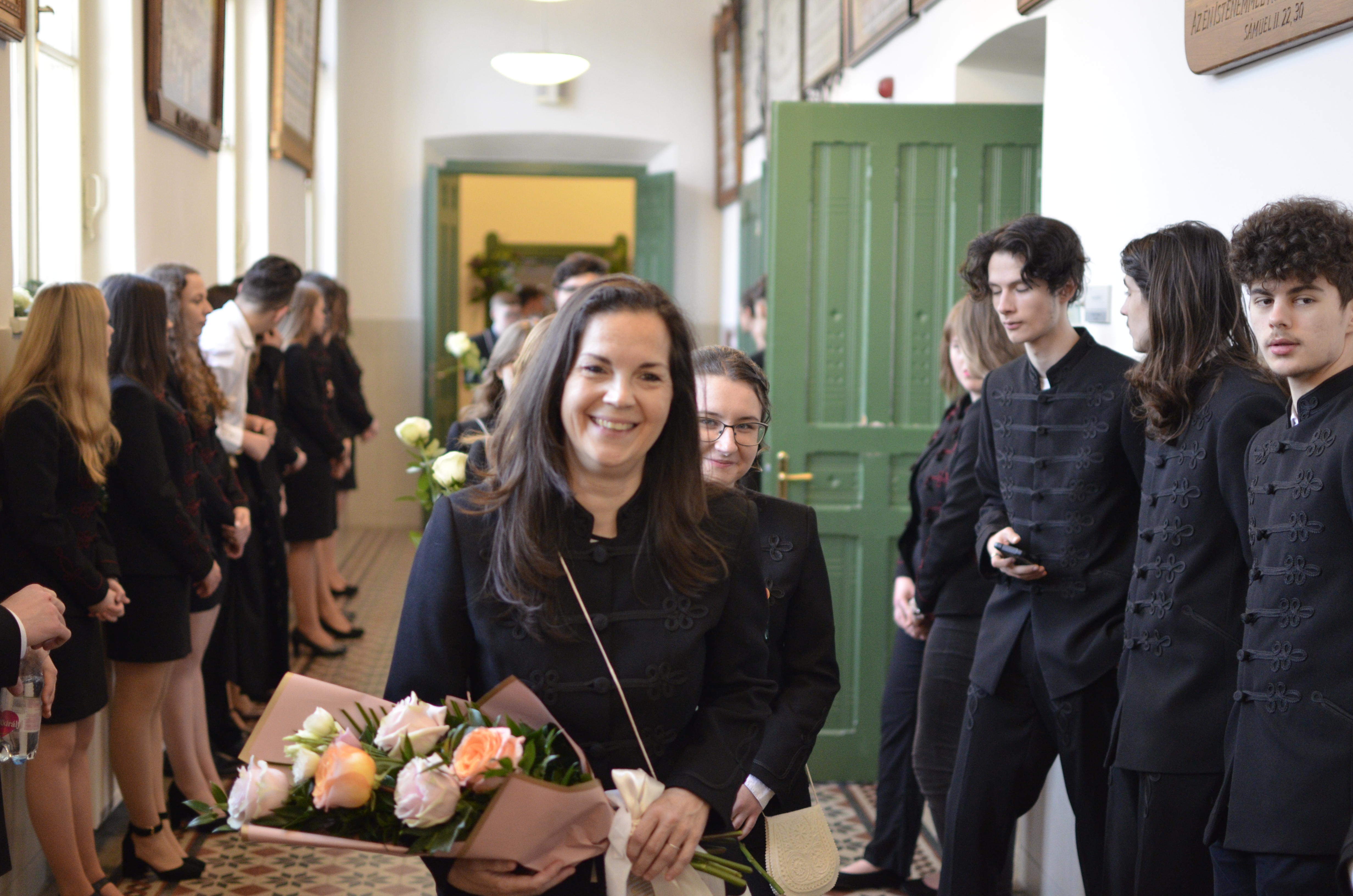Igazgatónő, Ivánné Nagy Erzsébet Bernadett megemlékezett arról, hogy egy olyan évfolyamtól köszöntünk el, amelyben a szív és az együttérzés volt a meghatározó a tanulmányokon túl. Felelevenítette hogyan bátorították egymást a járványhelyzet alatt és után, majd a háború kitörésekor a menekültek között végzett önkéntes munkát és a szíriai földrengés után az általuk kezdeményezett adománygyűjtést. A kimagasló verseny és tanulmányi, illetve sport eredményeiért jópár diák átvehette az Orando et Laborando Alapítvány díjait.