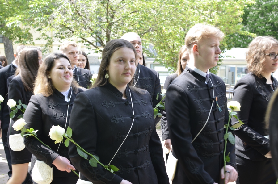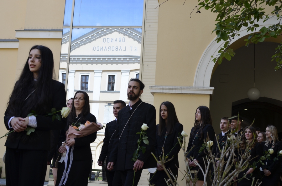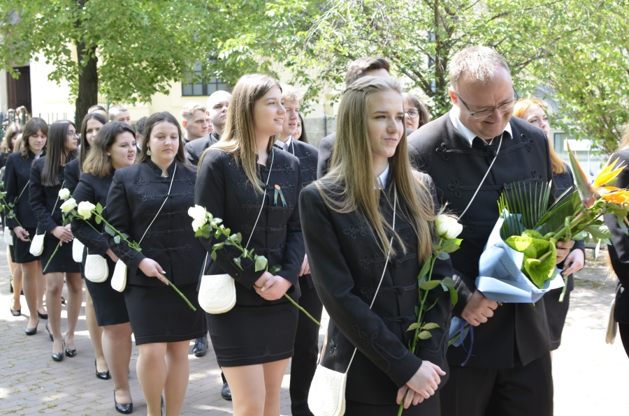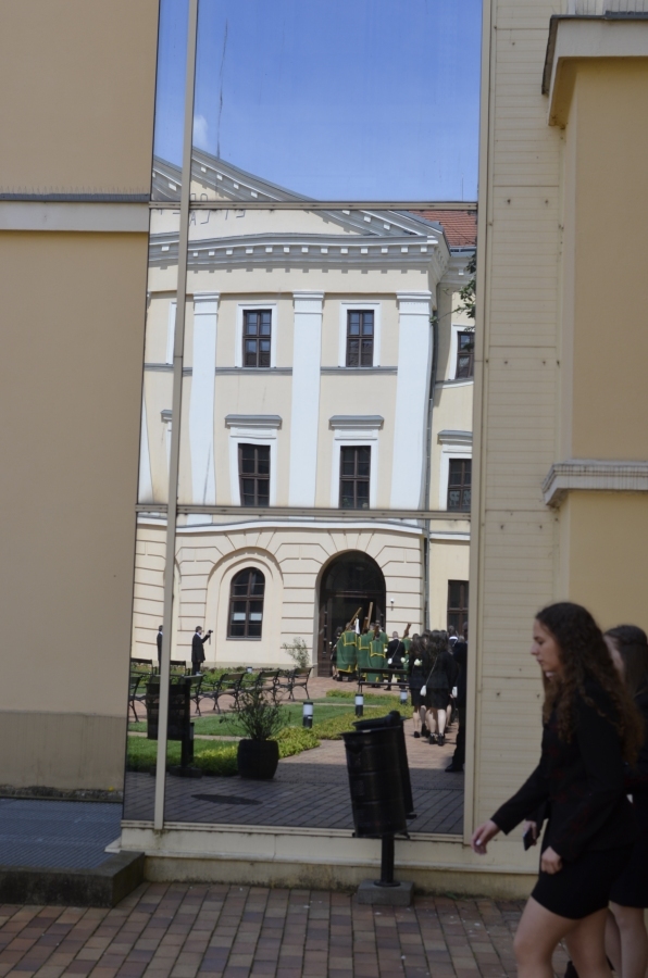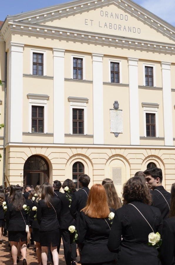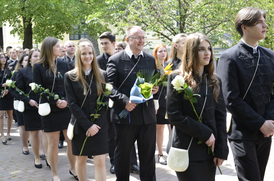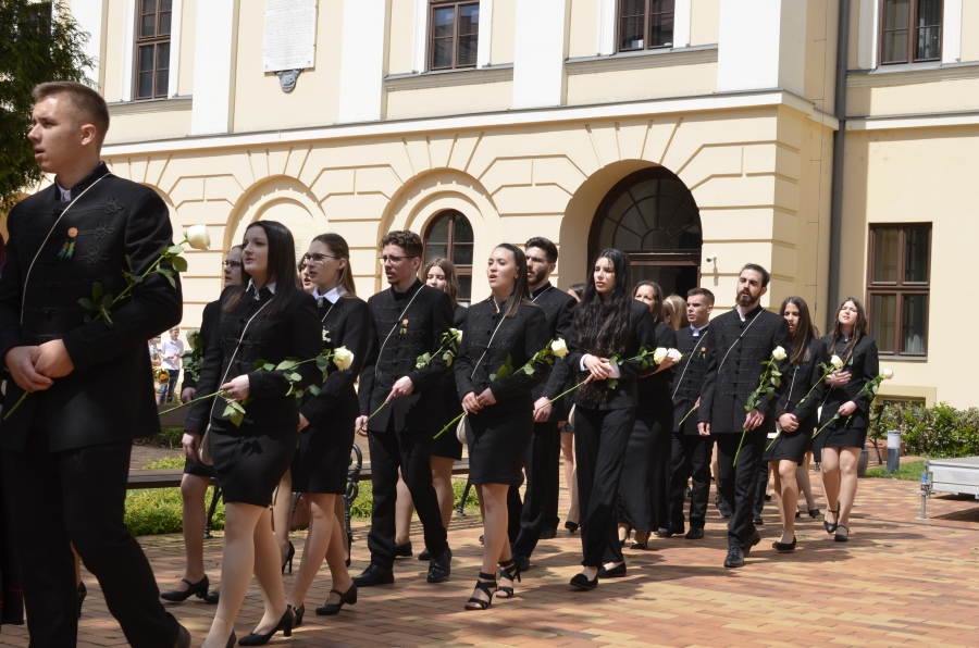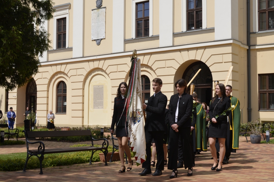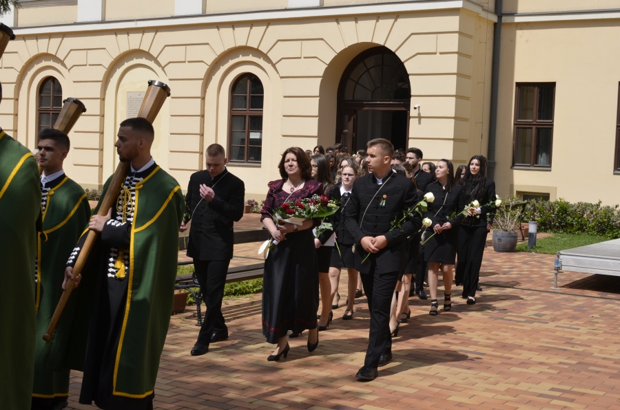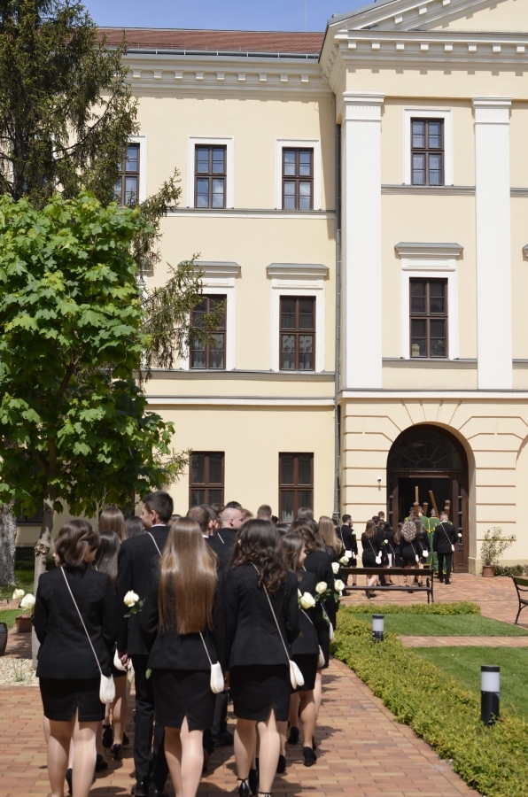 Szomorúan hálás szívvel búcsúztunk el három végzős osztályunktól. Kora reggel, hagyományainkhoz hűen, a 11. évfolyamosok által feldíszített folyosókon, a tanárok és diáktársak sorfala között, énekszóval köszönt el egykori iskolájától 82 diákunk. A meghatottság könnycseppjei, a hosszú ölelésesek, illetve az utolsó köszönő és bátorító szavak kísérték őket ezúttal utoljára a jól ismert és szeretett helyen.