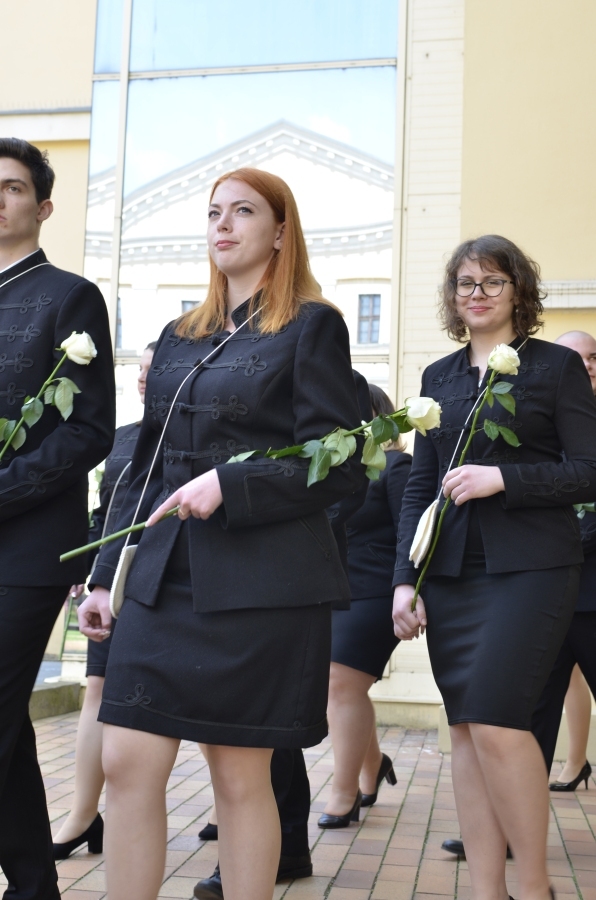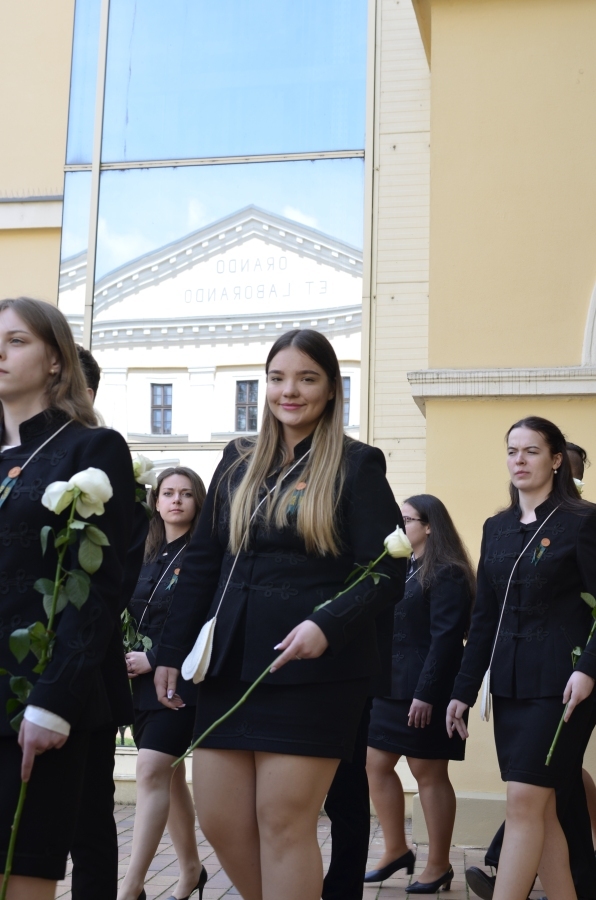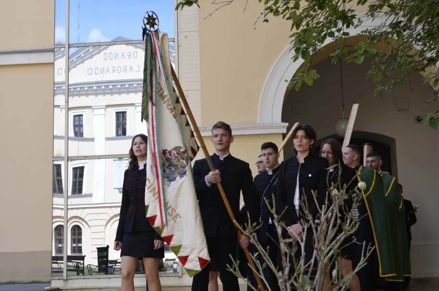 A Nagytemplomban már a családtagok jelenlétében folytatódott az ünnepség. Vezető vallástanárunk, Fehér Norbert, a hívő ember példaadó felelősségére hívta fel a megjelentek figyelmét Timótheus példája alapján. Ahogyan a fiatalok kezében lévő rózsa szirmai befelé, a középpont felé néznek – mondta – úgy kellene nekünk is az Úr felé, mint az életünk középpontja felé fordulni, és szavain tájékozódni.