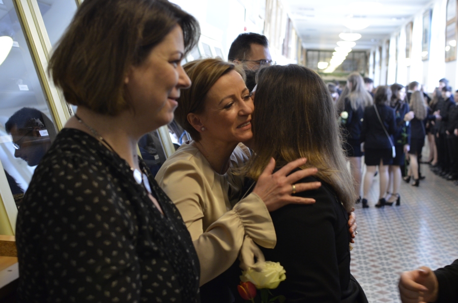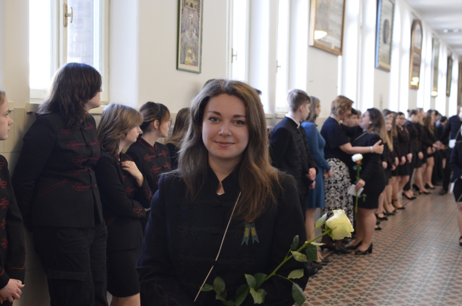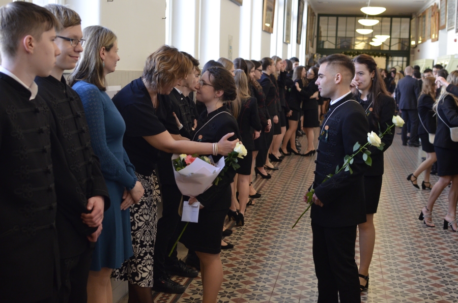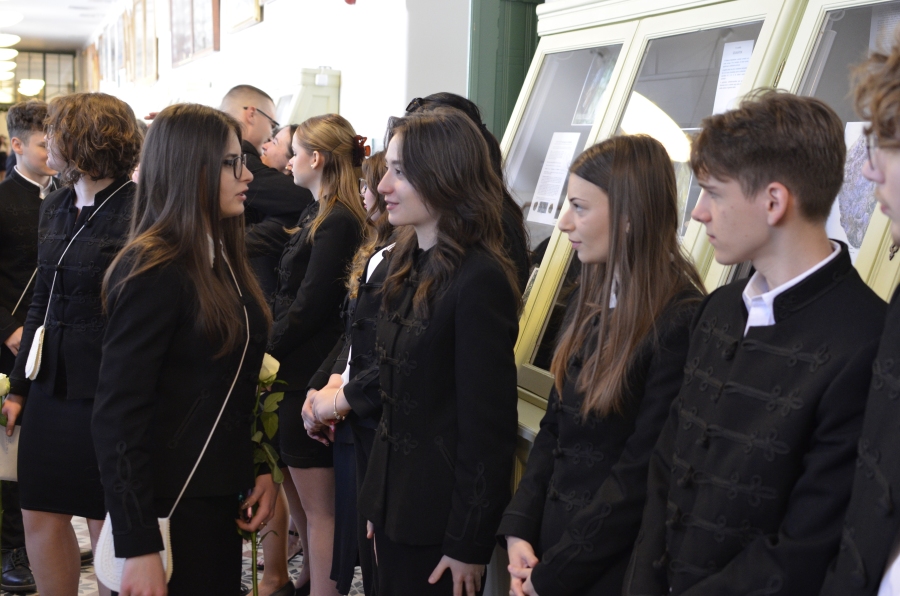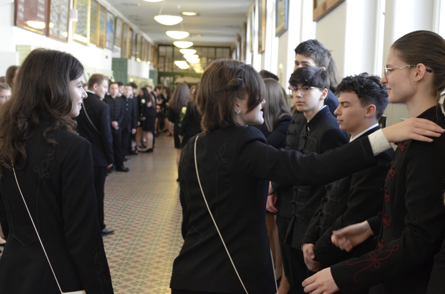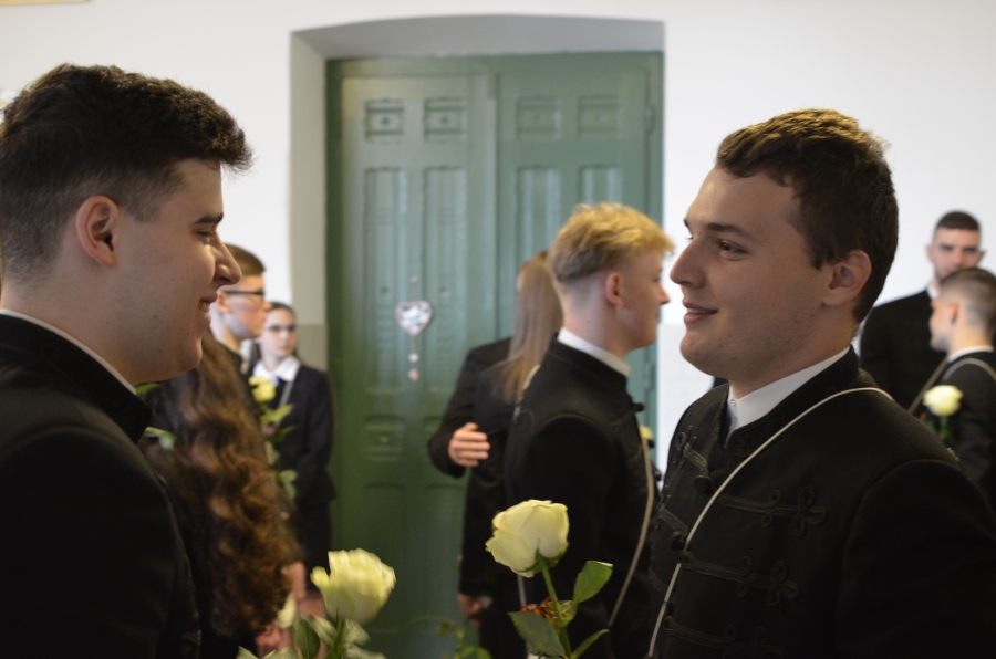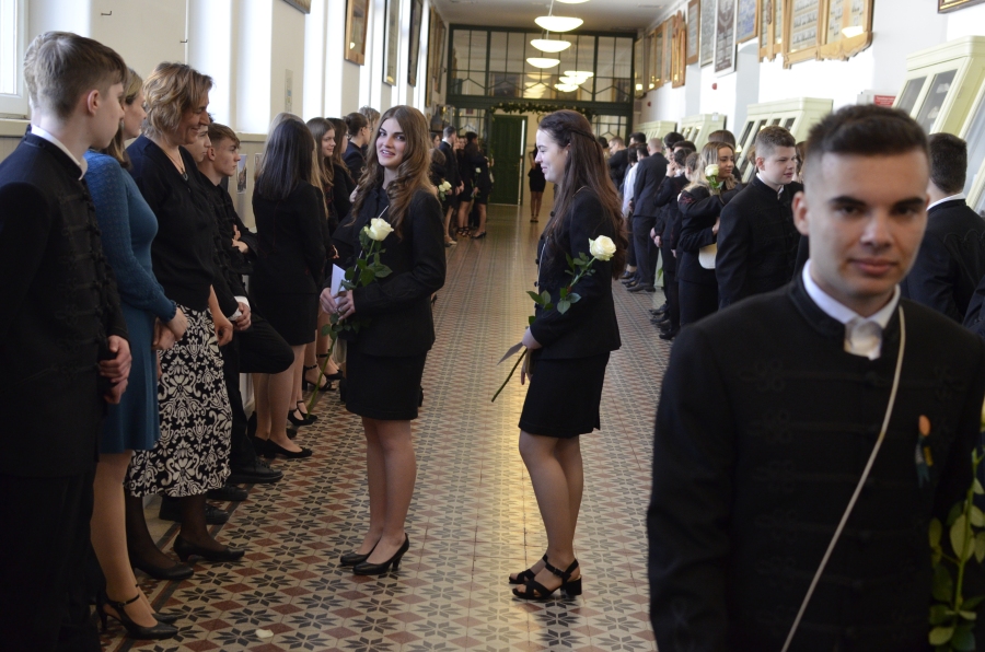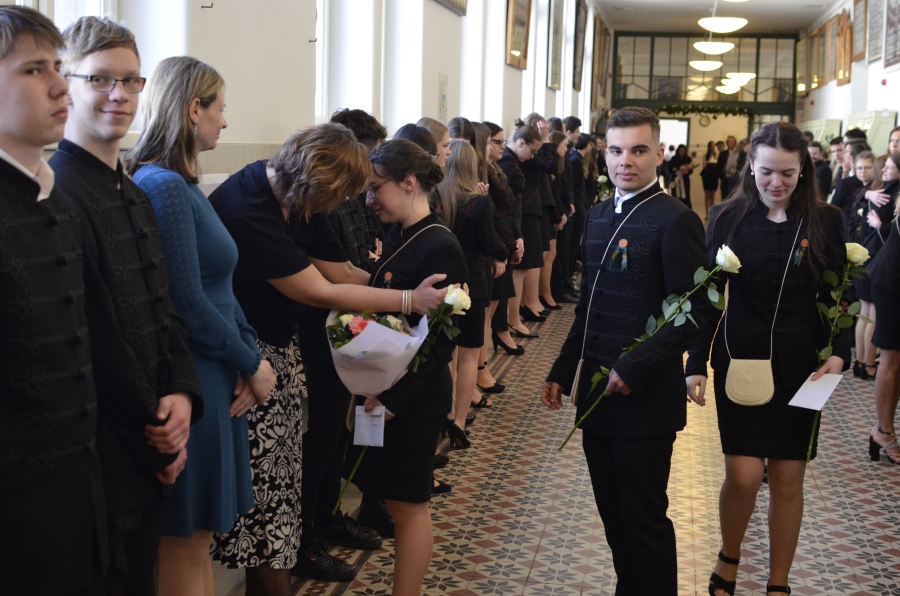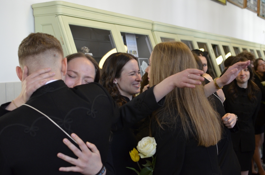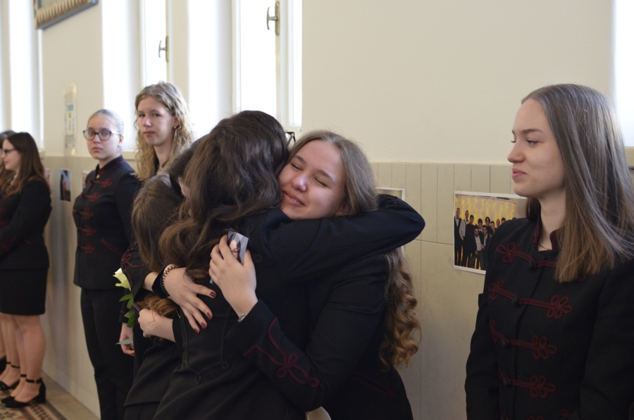 Szomorúan hálás szívvel búcsúztunk el három végzős osztályunktól. Kora reggel, hagyományainkhoz hűen, a 11. évfolyamosok által feldíszített folyosókon, a tanárok és diáktársak sorfala között, énekszóval köszönt el egykori iskolájától 82 diákunk. A meghatottság könnycseppjei, a hosszú ölelésesek, illetve az utolsó köszönő és bátorító szavak kísérték őket ezúttal utoljára a jól ismert és szeretett helyen.