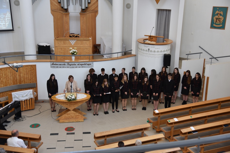 Határtalan szeretettel fogadták az egyházközség tagjai a 9.B osztályunkat múlt vasárnap. Diákjaink színvonalas, az egész osztályt megmozgató verses, zenés szolgálattal készültek, amelyről az alábbi képek is tanúskodnak. A melegszívű gyülekezet a sok finom süteményen túl, jó szóval, kedves törődéssel is ellátta tizenéveseinket. Köszönjük a sok kedvességet, melegszívű fogadtatást és a találkozás lehetőségét!
