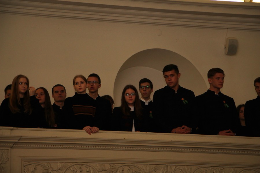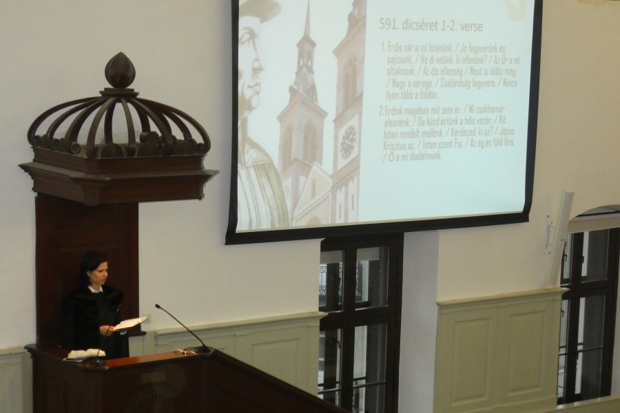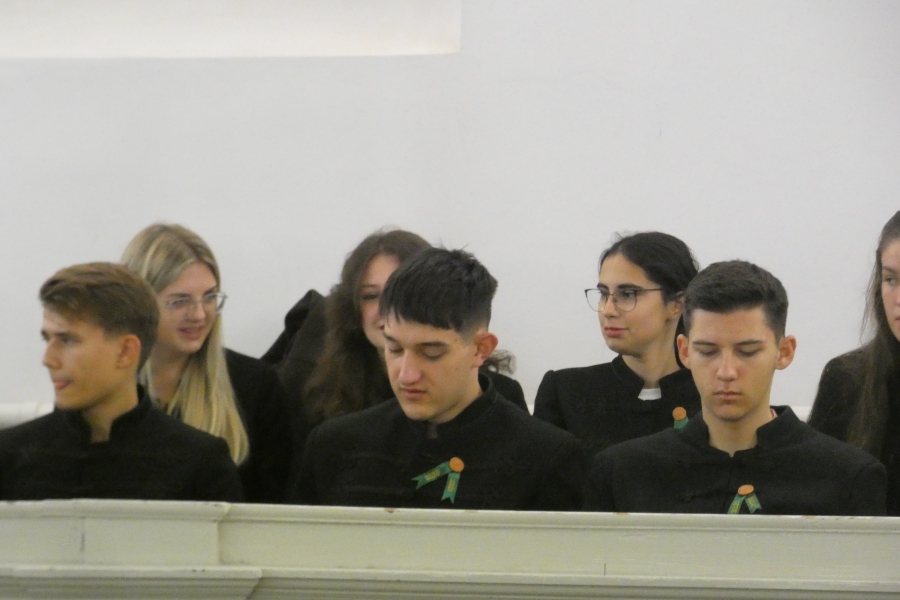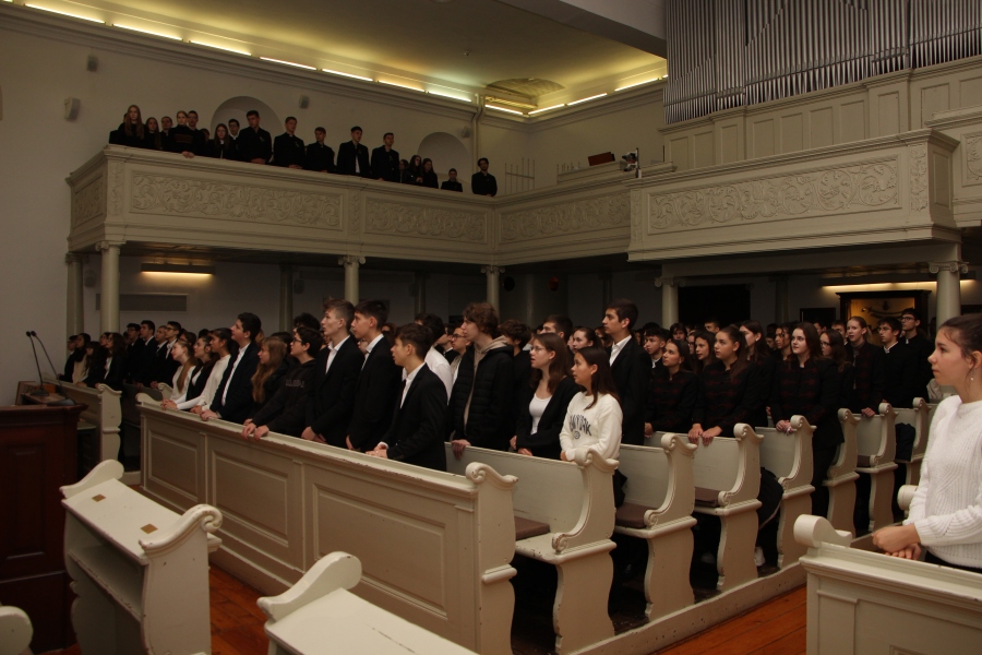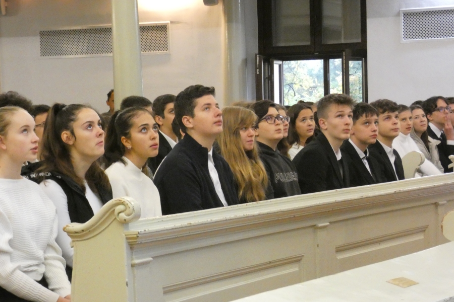 Az őszi szünet előtti utolsó tanítási napon az Oratóriumban gyűltünk össze istentiszteleti közösségre. A reformáció eseményeire emlékezve, az iskolalelkész, Berényiné Csinády Melinda, a Solus Christus – „Egyedül Jézus Krisztus” hitelv köré gyűjtötte az igehirdetés gondolatait János evangéliuma alapján. A diákok ugyanis egész héten a folyosón lévő imaséta által a reformáció öt alaptanítását gondolhatták végig. A kora reggeli közös lelki alkalom végén, hagyományaink szerint, megkoszorúztuk diákságunkkal a Gályarabok Emlékoszlopát.