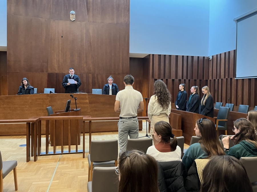 Különleges élményben volt része közel 100 tanulónknak a tegnapi nap folyamán, hiszen egy valósághűen megrendezett bírósági tárgyaláson vehettek részt egykori diákunk, dr. Hornyák Zsolt csoportvezető bíró segítségével. A perszimuláción tizenéveseink nagy átéléssel játszották a különböző szerepeket, így maguk is átélték mi történik egy eljárás során. Betekinthettek a bíróságon folyó munka kulisszatitkaiba, és bevonódtak a meghallgatás kihívásinak nehézségeibe. Néző társaikat is mélyen megérintette, hogy egy fiatalon elkövetett csínynek milyen komoly, életre szóló következményei lehetnek. Mindezt mi sem jelezte jobban, mint az, hogy az előadás végén még sokáig kérdezgették a bíró urat a nyomozásról, az ítélet meghozatalának folyamatáról és enyhítő körülményekről, illetve a későbbi következményekről.