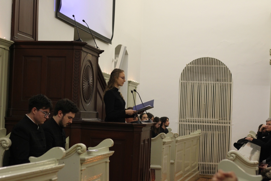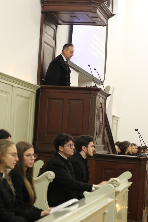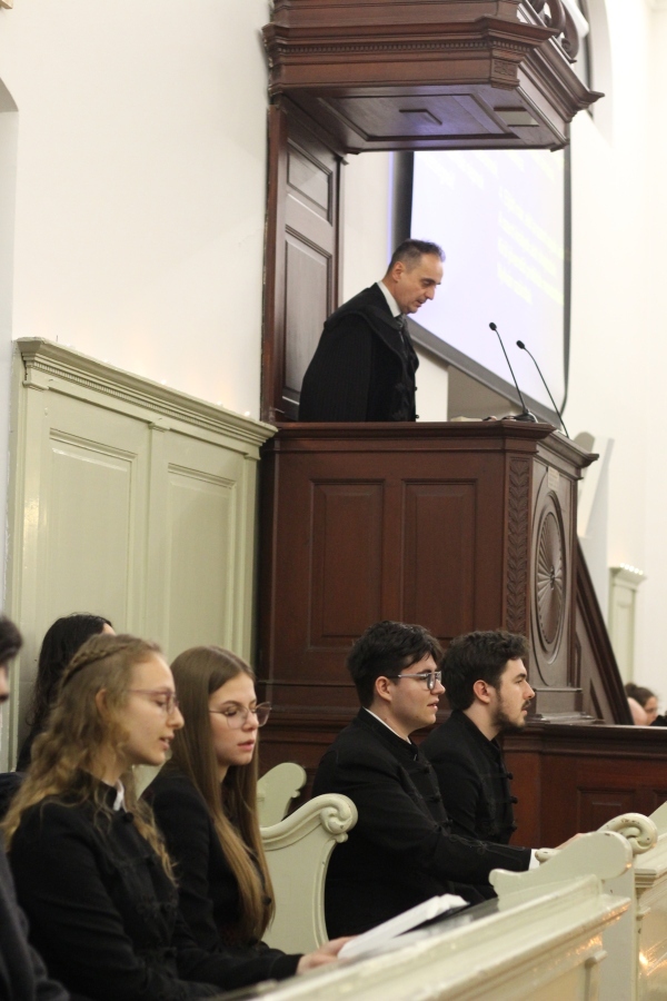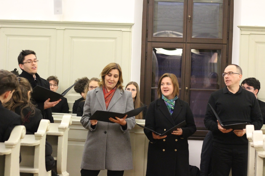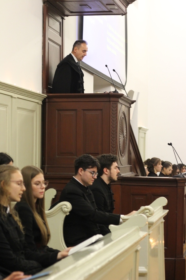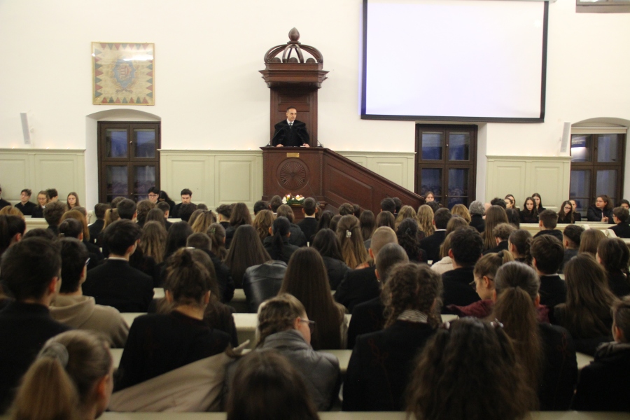 A téli szünet előtti utolsó estén mindig egy lelkileg és érzelmileg gazdag, gyertyafényes meghitt hangulatú istentiszteletre gyűlünk össze az Oratóriumban, amelyet végzős vallás fakultációs diákjaink műsora színesít. Ezúttal nem csupán az általuk elhangzott versek és gondolatok tették emlékezetessé az alkalmat, hanem a 12.A-s fiúk éneke, sőt a tanári kvartett karácsonyi dallamai is.