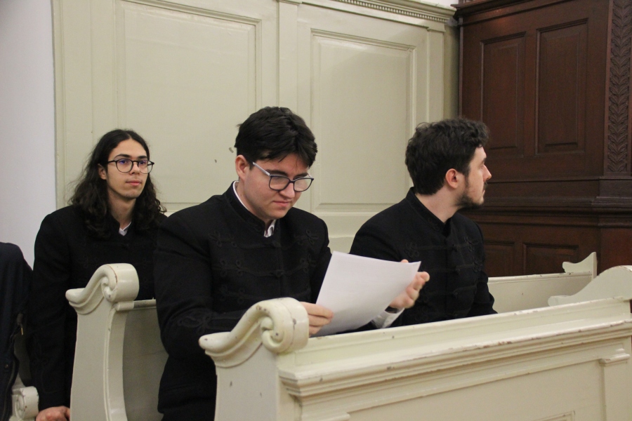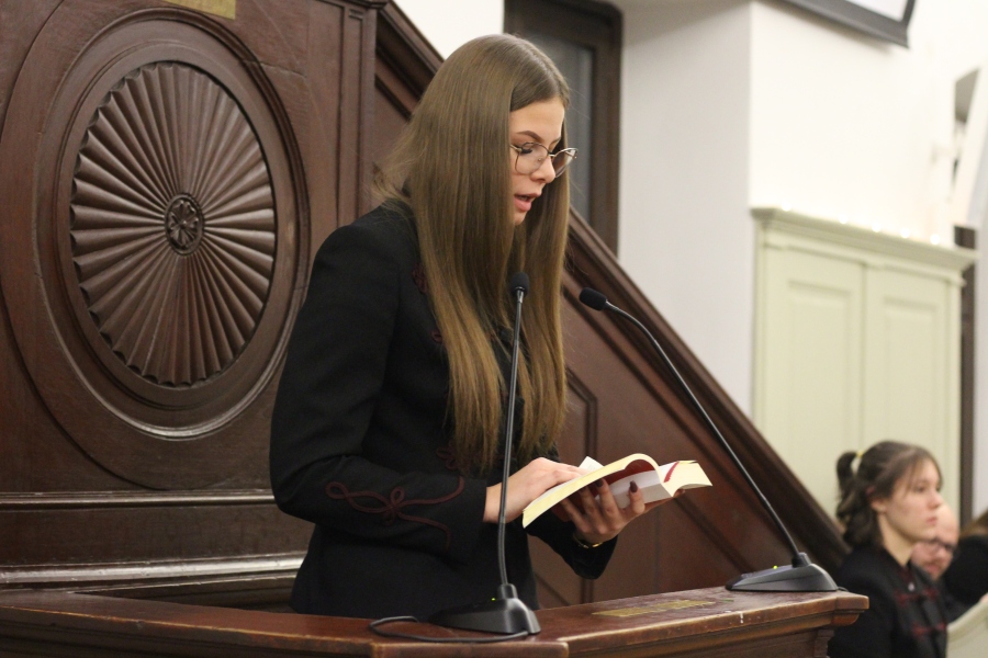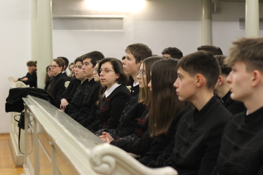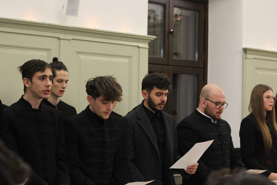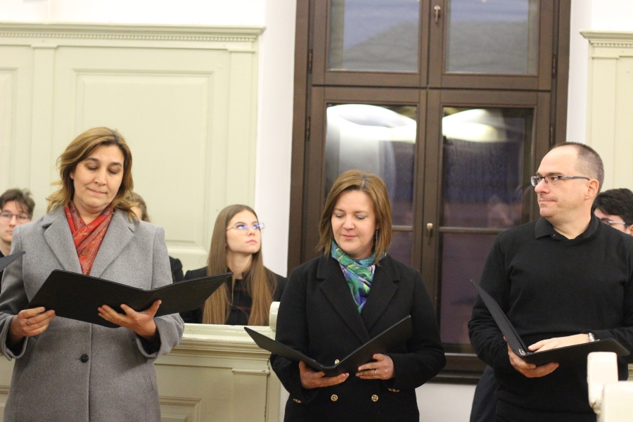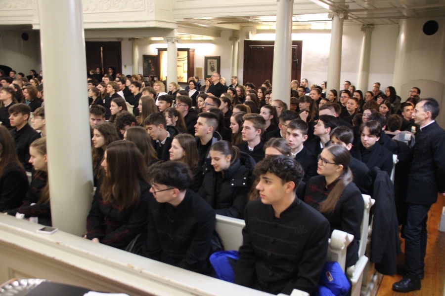 A téli szünet előtti utolsó estén mindig egy lelkileg és érzelmileg gazdag, gyertyafényes meghitt hangulatú istentiszteletre gyűlünk össze az Oratóriumban, amelyet végzős vallás fakultációs diákjaink műsora színesít. Ezúttal nem csupán az általuk elhangzott versek és gondolatok tették emlékezetessé az alkalmat, hanem a 12.A-s fiúk éneke, sőt a tanári kvartett karácsonyi dallamai is.