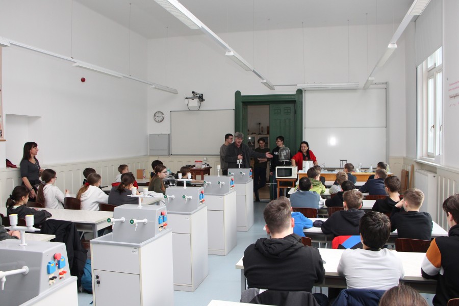 Ebben a hónapban a fizikai világa varázsolta el az általános iskolás kisdiákokat. Bíróné Kabály Enikő tanárnő és Bán István tanár úr gimnazista segítőikkel izgalmas kísérleteket végeztek hétköznapi tárgyak, pl. tojás, kézmelegítő, léggömb segítségével, hogy bemutassák hő és légnyomás okozta változást.