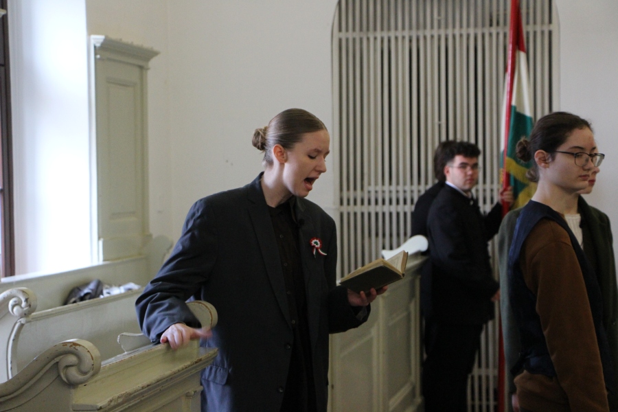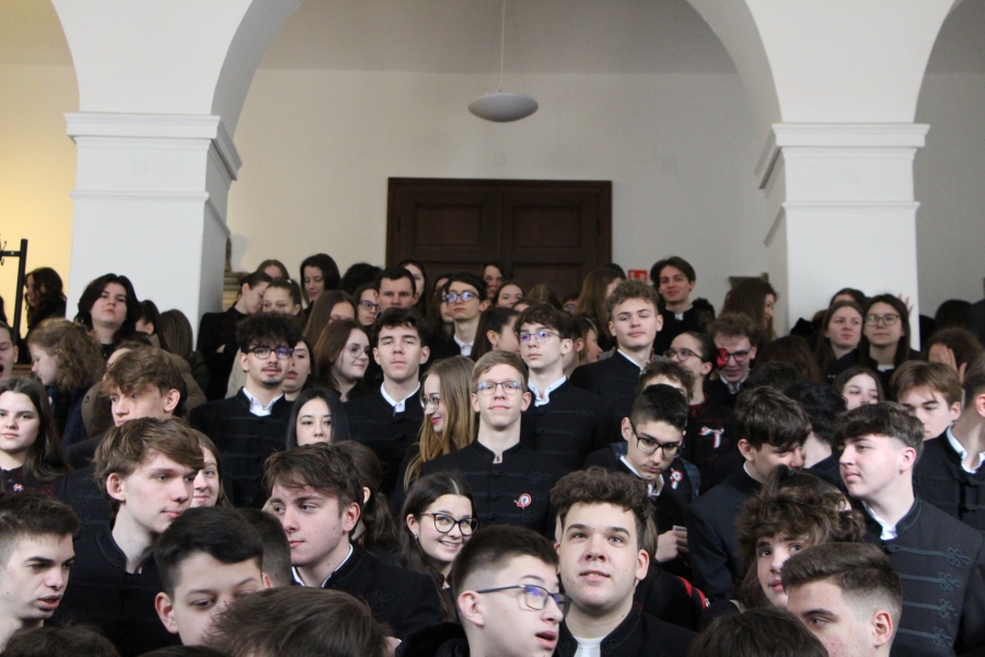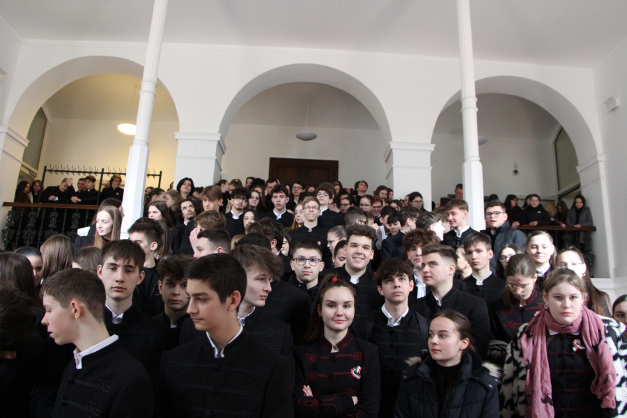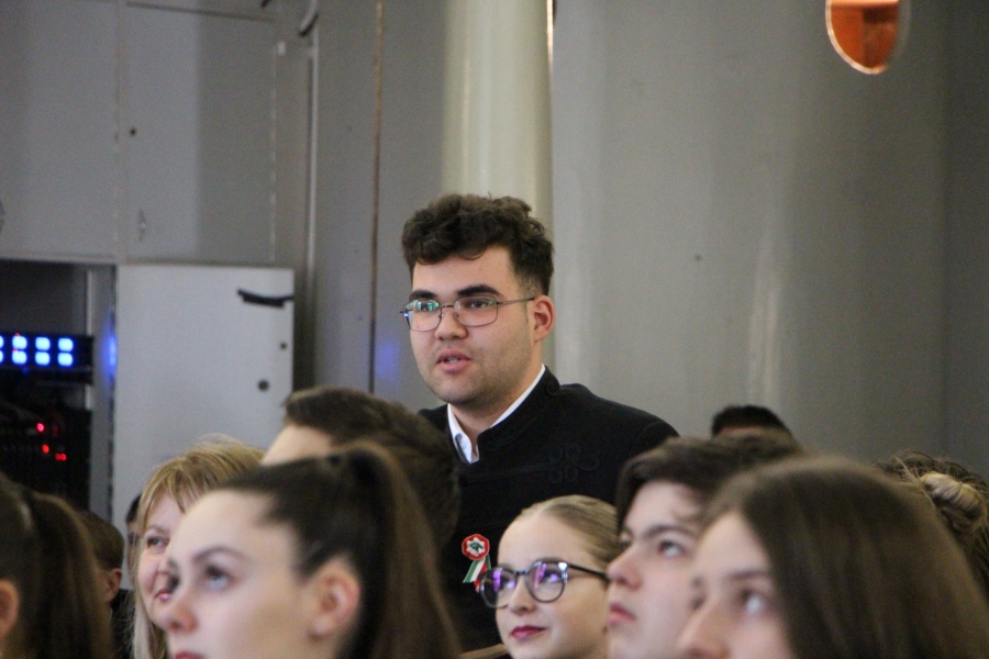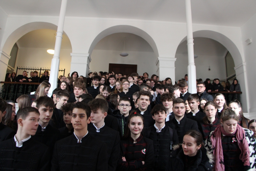 Iskolánk 11. b osztályos tanulói Jókai Mór emlékein keresztül elevenítették fel március 15-e eseményeit csütörtökön az Oratóriumban. Az első óra keretébe tömörítve komplex képet festettek, nem csak a nemzeti emlékezet által kitüntetett napról, de a forradalmat megelőző időszak kihívásairól is. Darabjuk kitért továbbá az egymást erősítő, nemzetközi és birodalmon belüli politikai folyamatoka, valamint a márciusi ifjak bemutatására, szerepére, illetve a szabadságharc utáni sorsukra egyaránt.