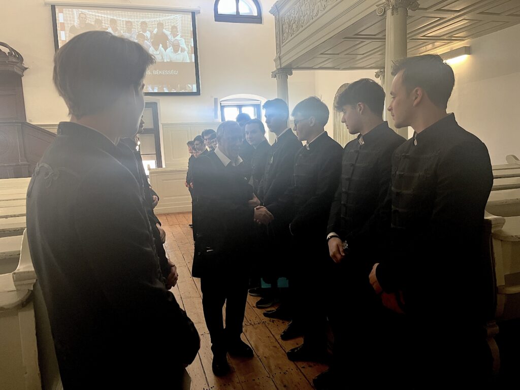 Különleges lelki alkalomra gyűltünk össze ma este az Oratóriumban. Nem csupán a végzőseink utolsó précesze volt ez, hanem az iskolától búcsúzó Rozgonyi Zoltán kollégánk utolsó, nevelőtanárként végzett, igei szolgálata is. Meghatóan elgondolkoztató bizonyságtételében elmesélte fiataljainknak, hogyan vezette őt az Úr az élet nehézségei és örömei között több mint negyven éven át, tudva azt, hogy „akik Istent szeretik, azoknak minden javukra szolgál.” (Róma 8,28)