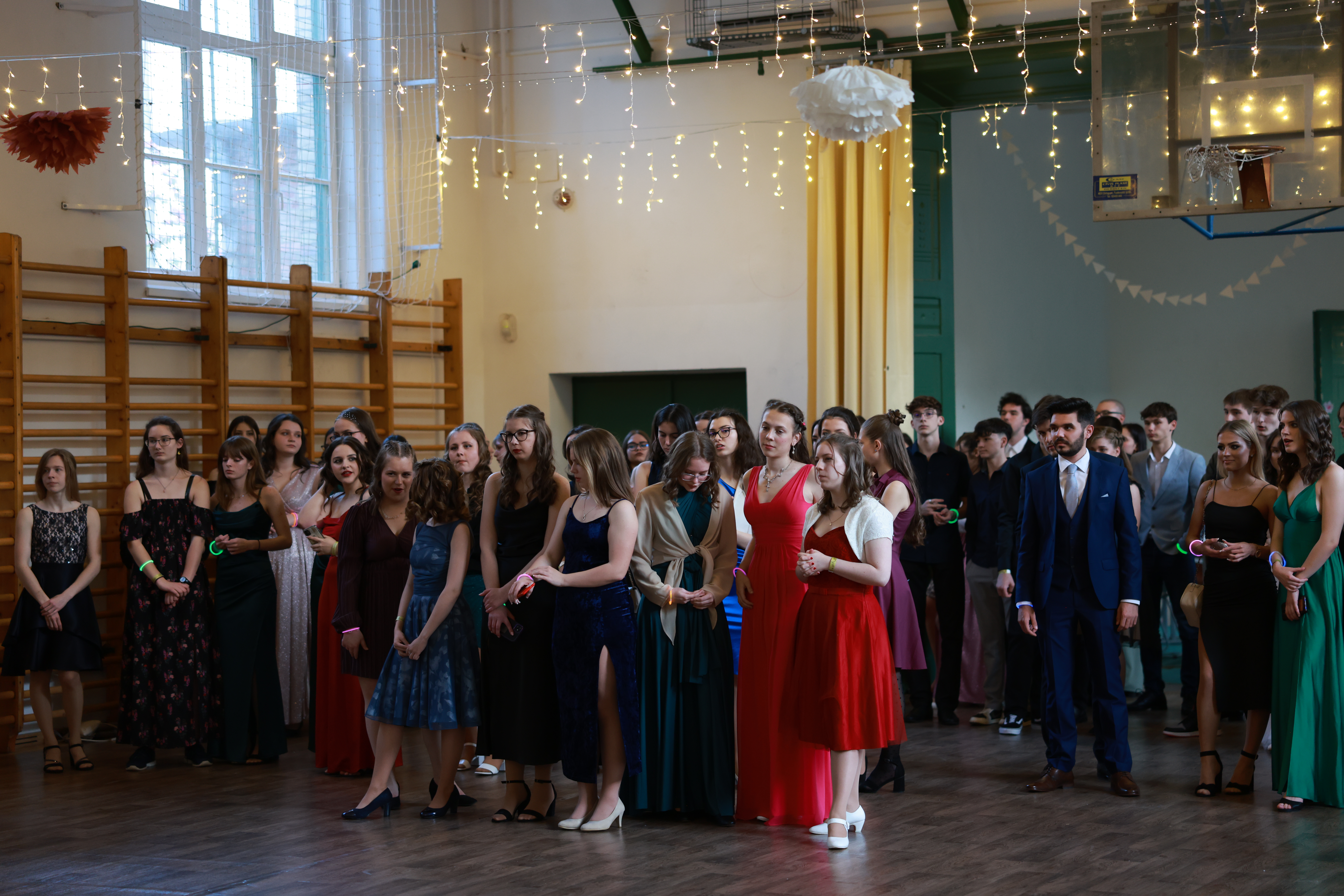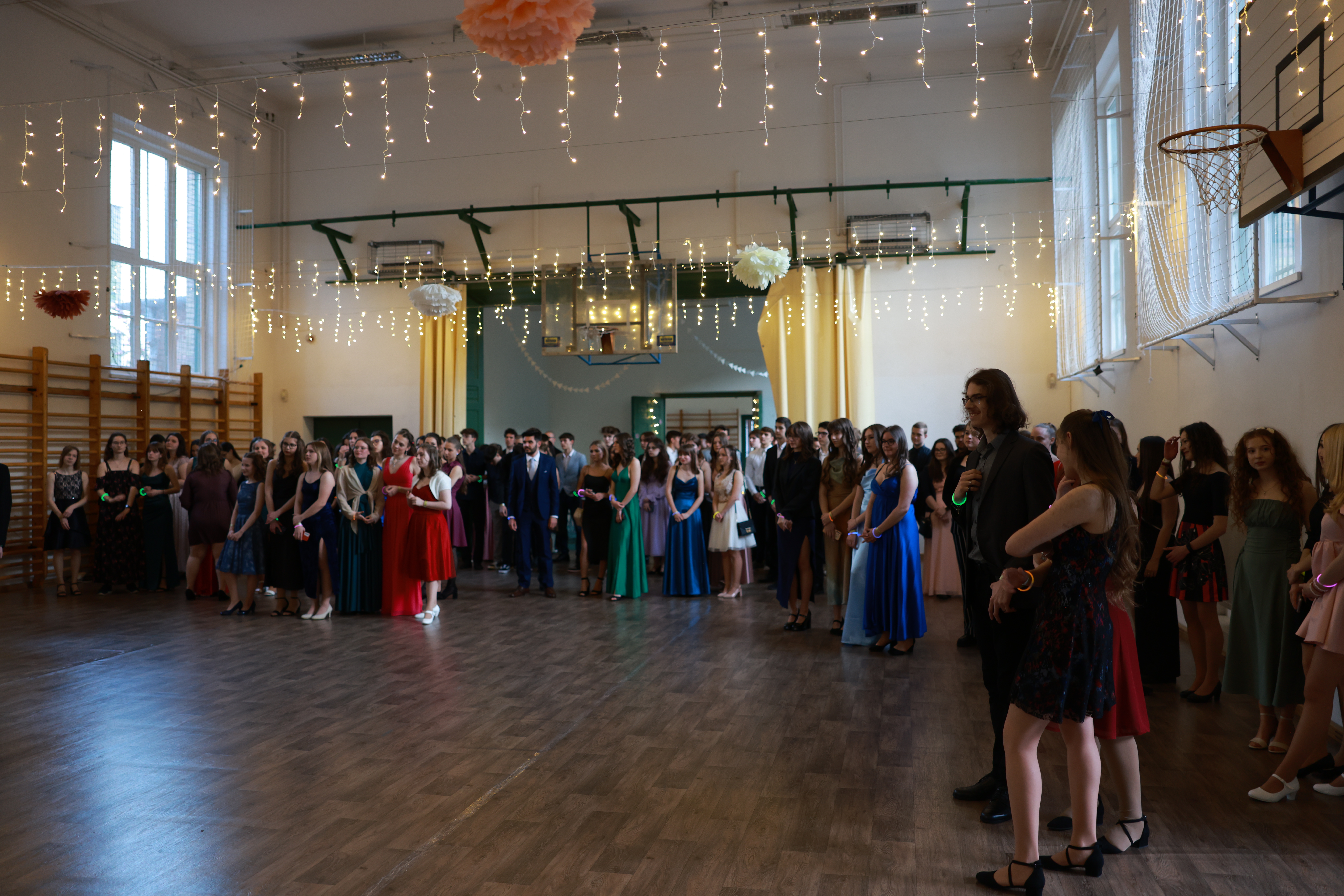 A nap lenyugvó fénye roppant elegáns ifjú hölgyeket és urakat köszöntött, ahogy izgatott örömmel gyülekeztek és üdvözölték egymást. Az igazi buli természetesen csak később vette kezdetét, mikor már csak a lampionok és fényfűzérek adtak némi derengést. A fiatal tanárkollégák lelkesen bekapcsolódtak a táncba és fotózkodásba. A fergeteges hangulatú rendezvénynek reméljük hamarosan lesz folytatása.