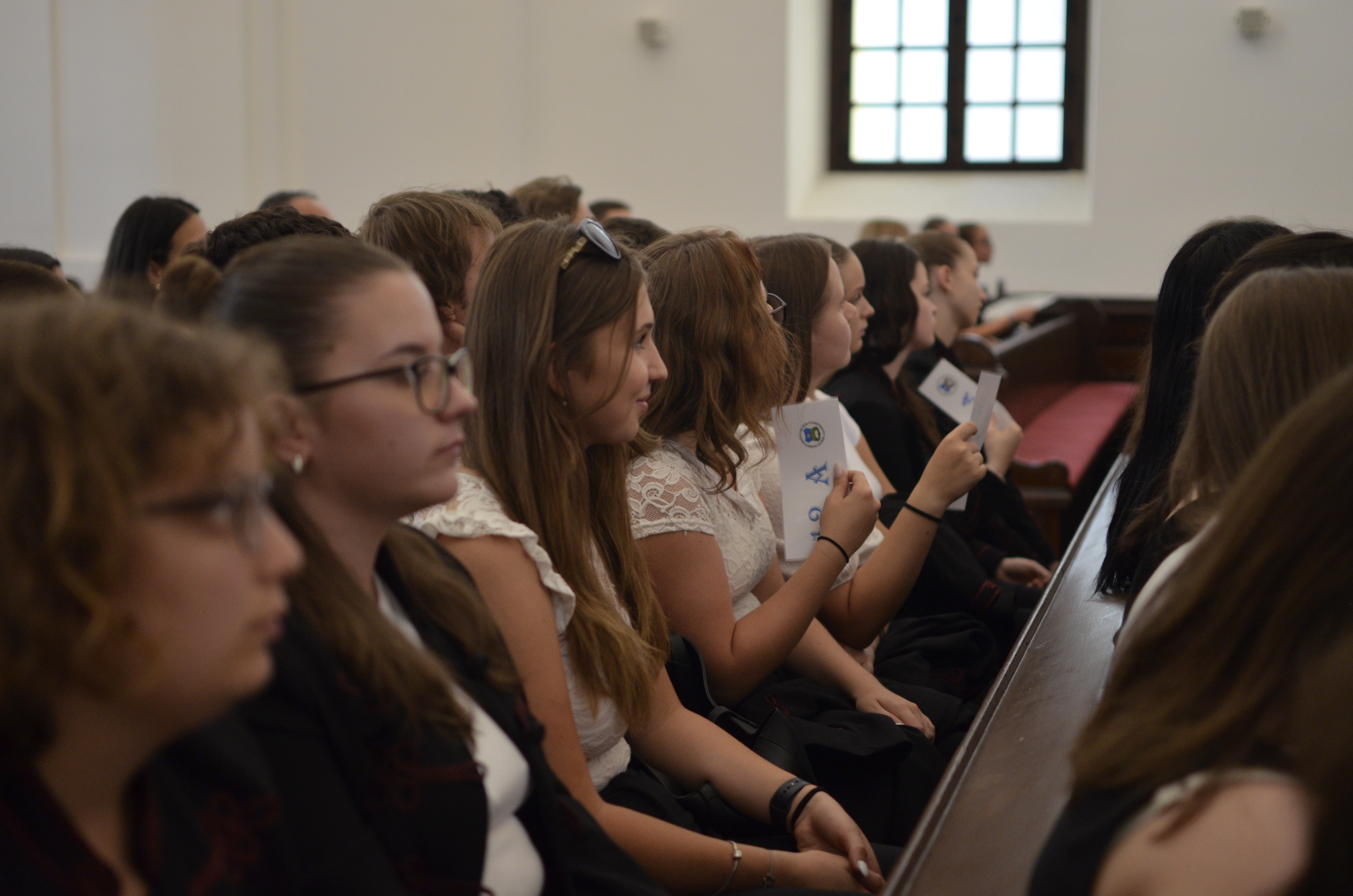 A vasárnapi évnyitó ünnepséggel megkezdtük iskolánk 487. tanévét. Az igehirdetésben a közösség megtartó erejére és az egymásra figyelés fontosságára hívta fel a figyelmet Galatákhoz írt levél 6. részének első versei alapján iskolalelkészünk a Berényiné Csinády Melinda. Ezt gondolatsort folytatta Ivánné Nagy Bernadett igazgatónő a szeretethimnusz gondolatai alapján kiemelve, hogy az egymás felé fordulás napjainkban is jelentős erőket mozgathat meg a hétköznapok próbatételei között. A DÖK elnöke, Darabont Dóra (12.D) kedves szavakkal köszöntötte a kilencedikeseket az idősebbek nevében, majd hagyományaink szerint a tizedik évfolyamos diákjaink fogadalmat tettek, így ettől kezdve polgáraivá fogadta őket a Kollégium. Az alkalmat Dani Anna (12.A) orgonajátéka színesítette.