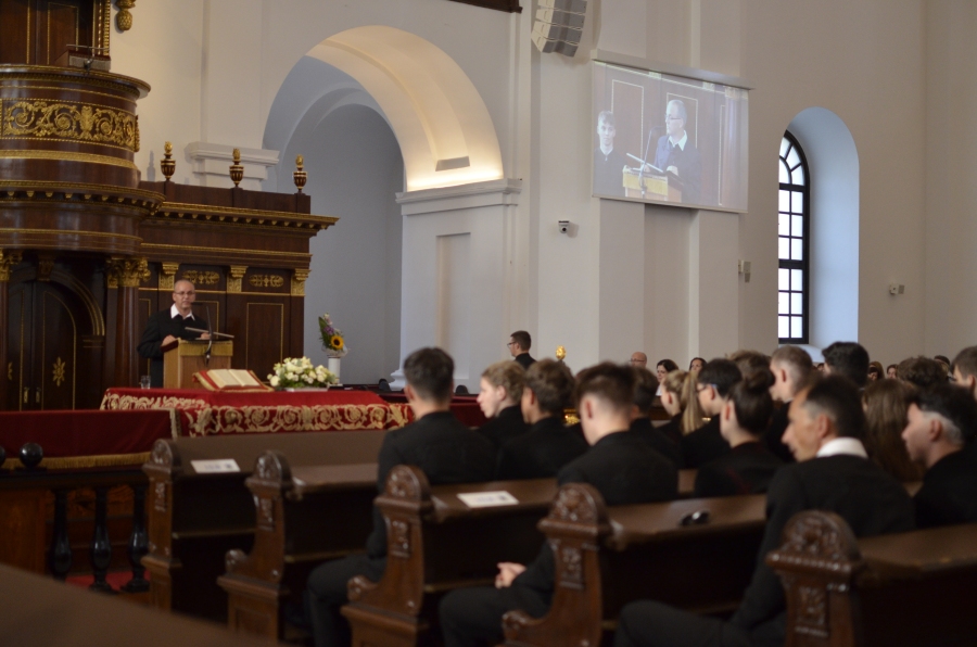 A vasárnapi évnyitó ünnepséggel megkezdtük iskolánk 487. tanévét. Az igehirdetésben a közösség megtartó erejére és az egymásra figyelés fontosságára hívta fel a figyelmet Galatákhoz írt levél 6. részének első versei alapján iskolalelkészünk a Berényiné Csinády Melinda. Ezt gondolatsort folytatta Ivánné Nagy Bernadett igazgatónő a szeretethimnusz gondolatai alapján kiemelve, hogy az egymás felé fordulás napjainkban is jelentős erőket mozgathat meg a hétköznapok próbatételei között. A DÖK elnöke, Darabont Dóra (12.D) kedves szavakkal köszöntötte a kilencedikeseket az idősebbek nevében, majd hagyományaink szerint a tizedik évfolyamos diákjaink fogadalmat tettek, így ettől kezdve polgáraivá fogadta őket a Kollégium. Az alkalmat Dani Anna (12.A) orgonajátéka színesítette.