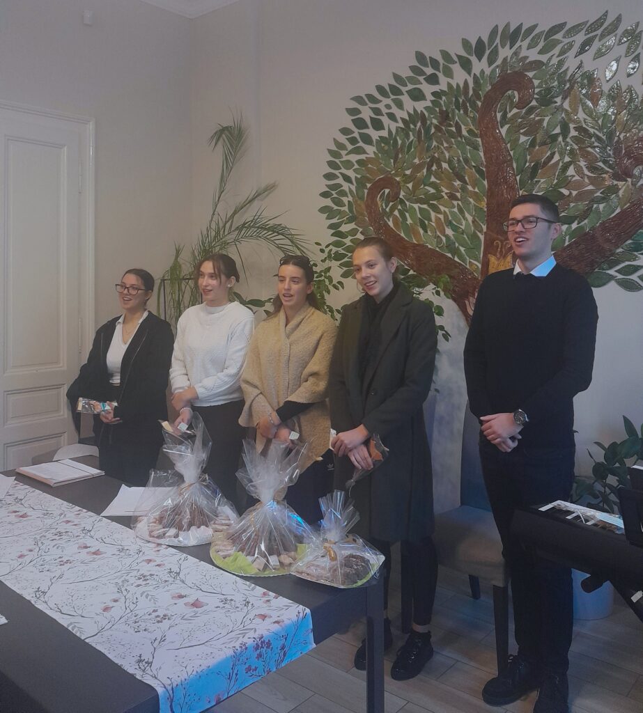 A Nyitott Ajtó Szociális Központ felkérésére 2024. október 16-án iskolánk 6 fős csapata tartotta az október 23-ai ünnepi megemlékezést. Műsorunk gerincét Irinyi Tamás Tanár Úr gondolatai adták, amelyek segítettek átlátni nemcsak a nap történéseit, hanem az azokhoz vezető utakat is. Egy-egy szövegrész között zenés vagy verses gondolatok kaptak helyet; Petróczi Anna (12.B) zongorajátéka, Simon Anna és Kiss Kamilla (11.A) szavalata, továbbá Dani Anna és László Lóránd Tanár Úr közös éneklése. Az idősek nagy szeretettel fogadtak minket a legutóbbi alkalomhoz hasonlóan. A közel 70 évvel ezelőtti események teljesen más megvilágításba kerülnek, ha belegondolunk, hogy a jelenlévők közül néhányan személyesen is átélhették a történteket.
