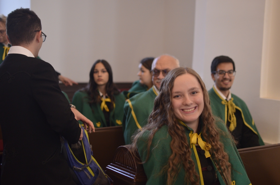 Osztályfőnökként figyeltem őket az utolsó táncpróbán és a nagy halom táncruha között. Izgatottak voltak, tudatosak, lelkesek és készülődtek. Az a kép idéződött fel bennem, hogy olyanok, mint aki útnak indulás előtt tervezget, készülődik és pakol. Aztán rájöttem, hogy ez a valóság. Pontosan ezt teszik, mert a szalag, amit a Nagytemplomban megkapnak, olyan, mint egy meghívó a felnőtt életbe induláshoz. Ez még nem jegy, nem a beszálló kártya, hiszen az a ballagás, és az érettségi bizonyítvány lesz, de mégis egy meghívó, amit rajtunk, osztályfőnökökön keresztül az Úristen ad nekik a felnőtt életbe induláshoz. Most még köztünk vannak, de a lelkünk mélyén már mind búcsúzunk ettől kezdve. Ők is, és mi is.
