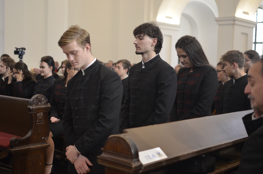 Osztályfőnökként figyeltem őket az utolsó táncpróbán és a nagy halom táncruha között. Izgatottak voltak, tudatosak, lelkesek és készülődtek. Az a kép idéződött fel bennem, hogy olyanok, mint aki útnak indulás előtt tervezget, készülődik és pakol. Aztán rájöttem, hogy ez a valóság. Pontosan ezt teszik, mert a szalag, amit a Nagytemplomban megkapnak, olyan, mint egy meghívó a felnőtt életbe induláshoz. Ez még nem jegy, nem a beszálló kártya, hiszen az a ballagás, és az érettségi bizonyítvány lesz, de mégis egy meghívó, amit rajtunk, osztályfőnökökön keresztül az Úristen ad nekik a felnőtt életbe induláshoz. Most még köztünk vannak, de a lelkünk mélyén már mind búcsúzunk ettől kezdve. Ők is, és mi is.