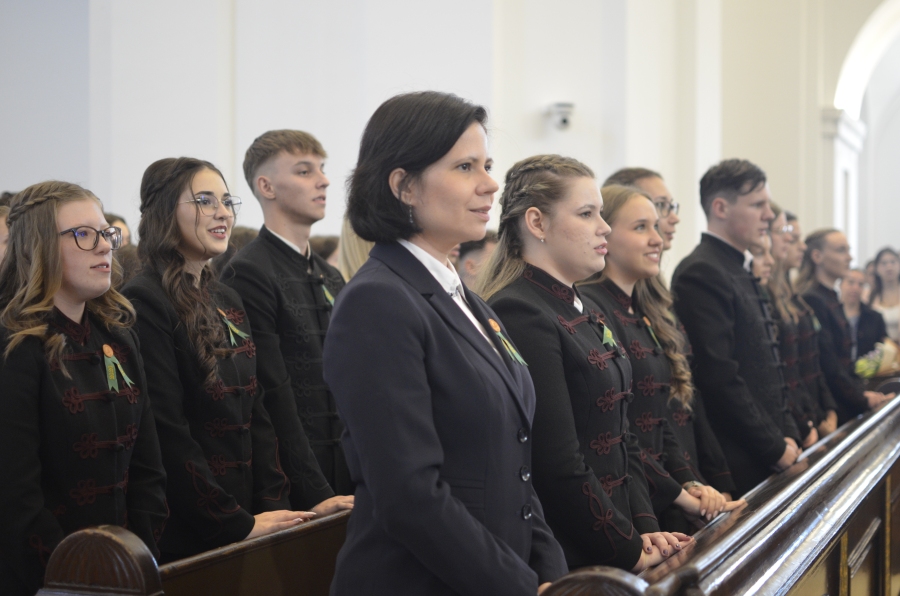Osztályfőnökként figyeltem őket az utolsó táncpróbán és a nagy halom táncruha között. Izgatottak voltak, tudatosak, lelkesek és készülődtek. Az a kép idéződött fel bennem, hogy olyanok, mint aki útnak indulás előtt tervezget, készülődik és pakol. Aztán rájöttem, hogy ez a valóság. Pontosan ezt teszik, mert a szalag, amit a Nagytemplomban megkapnak, olyan, mint egy meghívó a felnőtt életbe induláshoz. Ez még nem jegy, nem a beszálló kártya, hiszen az a ballagás, és az érettségi bizonyítvány lesz, de mégis egy meghívó, amit rajtunk, osztályfőnökökön keresztül az Úristen ad nekik a felnőtt életbe induláshoz. Most még köztünk vannak, de a lelkünk mélyén már mind búcsúzunk ettől kezdve. Ők is, és mi is.