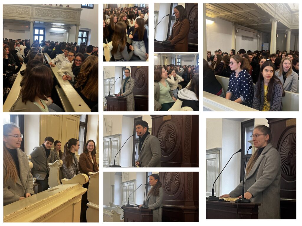 Fiatalos hangulatú hétkezdő áhítaton vettek ma részt fiataljaink, mivel a Szenci Molnár Albert Református Felsőoktatási Diákotthon lelkésze, Petkes Piroska és néhány egyetemista diák szolgált közöttünk. Jó élmény volt újra találkozni egykori kedves diákjainkkal.