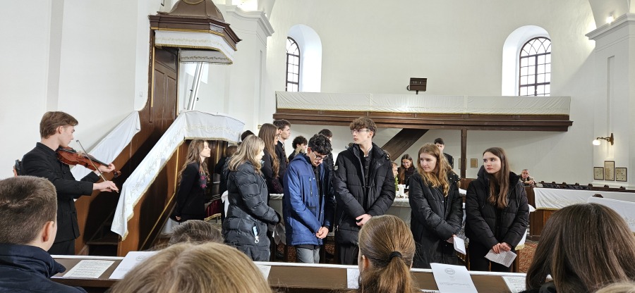 Az istentiszteletet a 10.A osztály adventi szolgálatával kezdődött. A Sötétség szűnni kezd már dallamára énekelt a csapatunk, majd Fabiny Tamás Szeretethimnusz feldolgozása következett. Szolgálatunk a Nincs más Isten dallamával folytatódott.