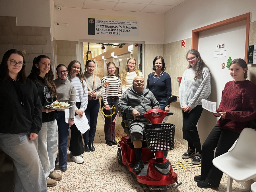 Diákjaink lelkes kis csapata jópár év kihagyás után ismét ellátogatott a Kenézy Gyula Kórházba, hogy énekszóval, mosollyal, igéskártyával és szaloncukorral ünnepet csempésszenek a betegek és a dolgozók hétköznapjaiba. Adventi követként a folyosókat járva, látva az érzelmeket, és a feltörő emlékeket, felidéződött bennünk Jézus szava a juhok és kosok példázatából: „beteg voltam, és meglátogattatok” (Mt 25,36), és rájöttünk, hogy milyen nehéz is a meggyöngült egészségű emberek között naponta segítőként megállni.